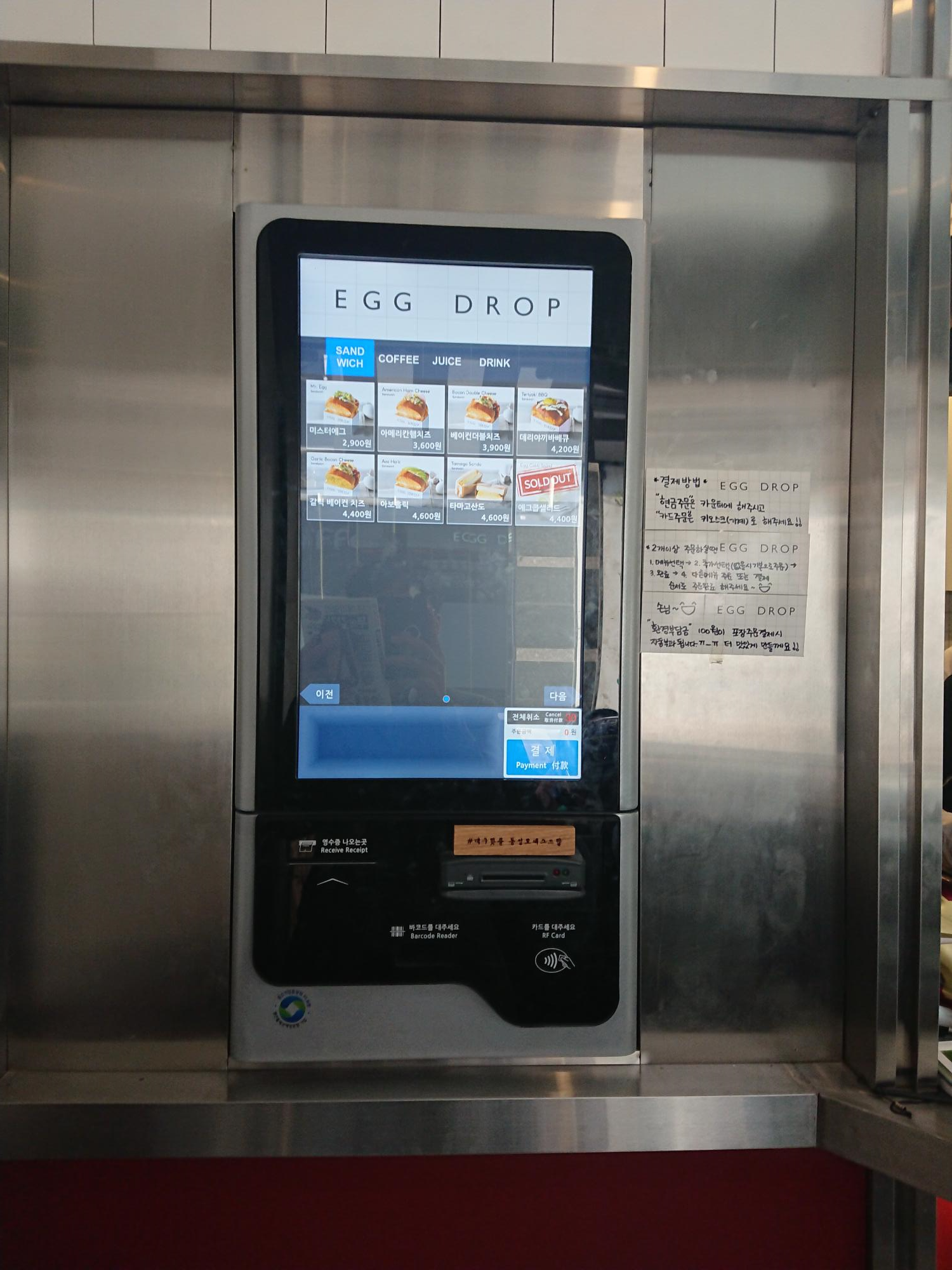 요새 대부분의 커피점이나 패스트푸드점처럼 여기도 키오스크로 주문과 결제를 하고,
