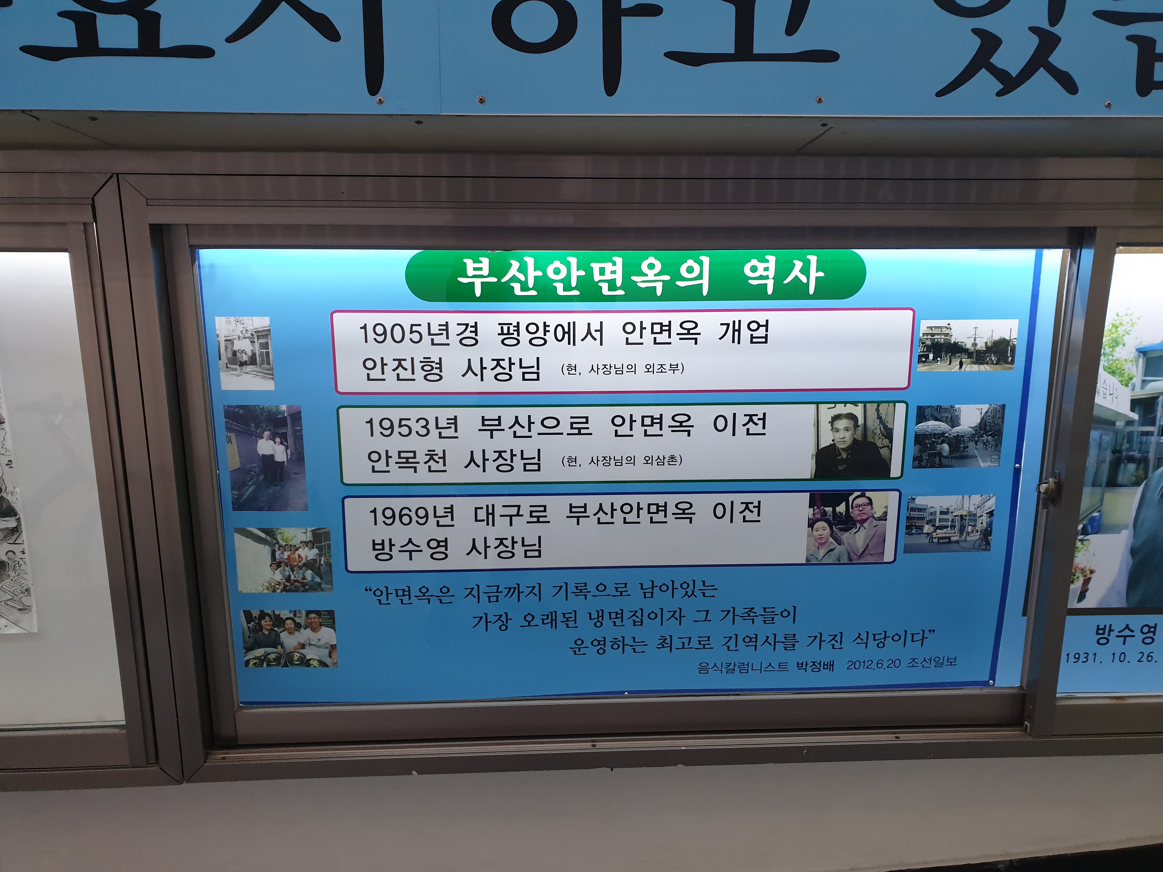 입구에서부터 독특하게 긴 역사를 가진 부산안면옥의 역사를 볼 수 있네요.