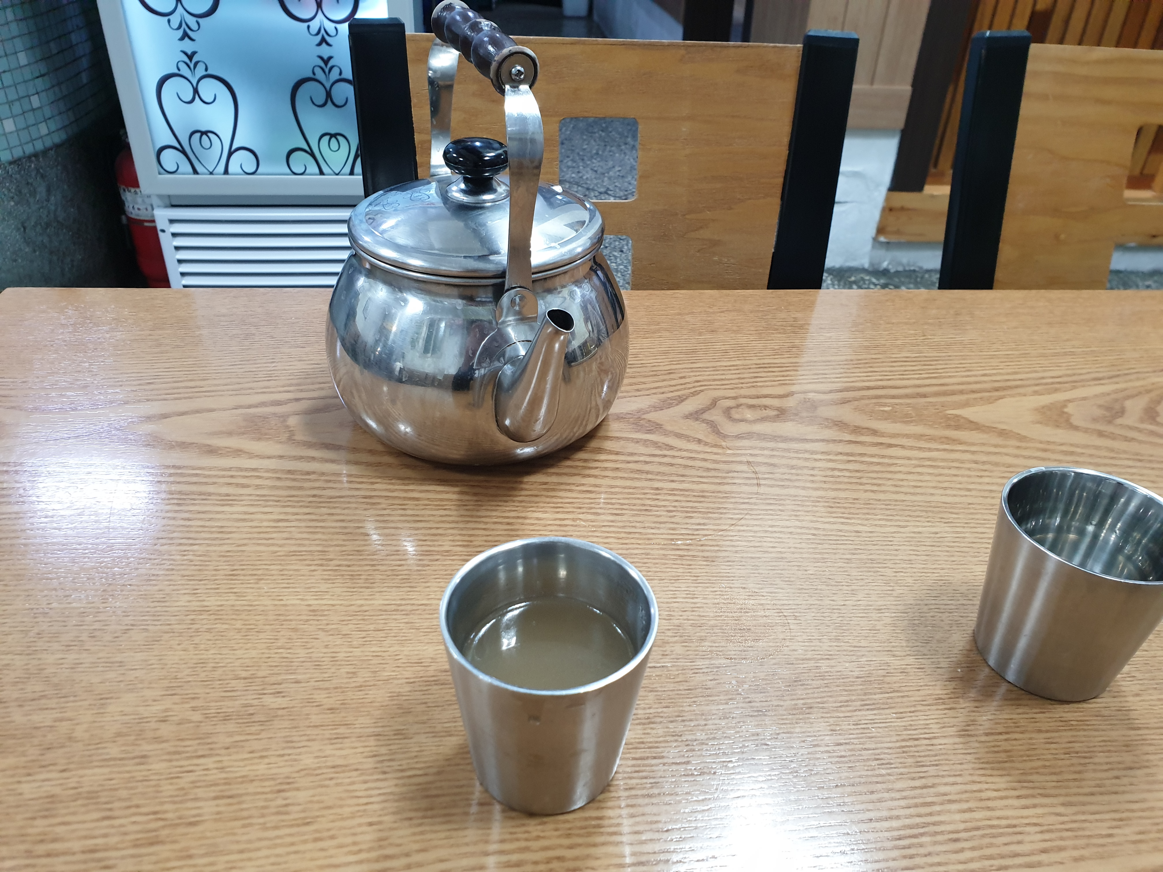 들어가서 주문하니 여느 냉면집과 다른 없이 따뜻한 육수를 내어줍니다.