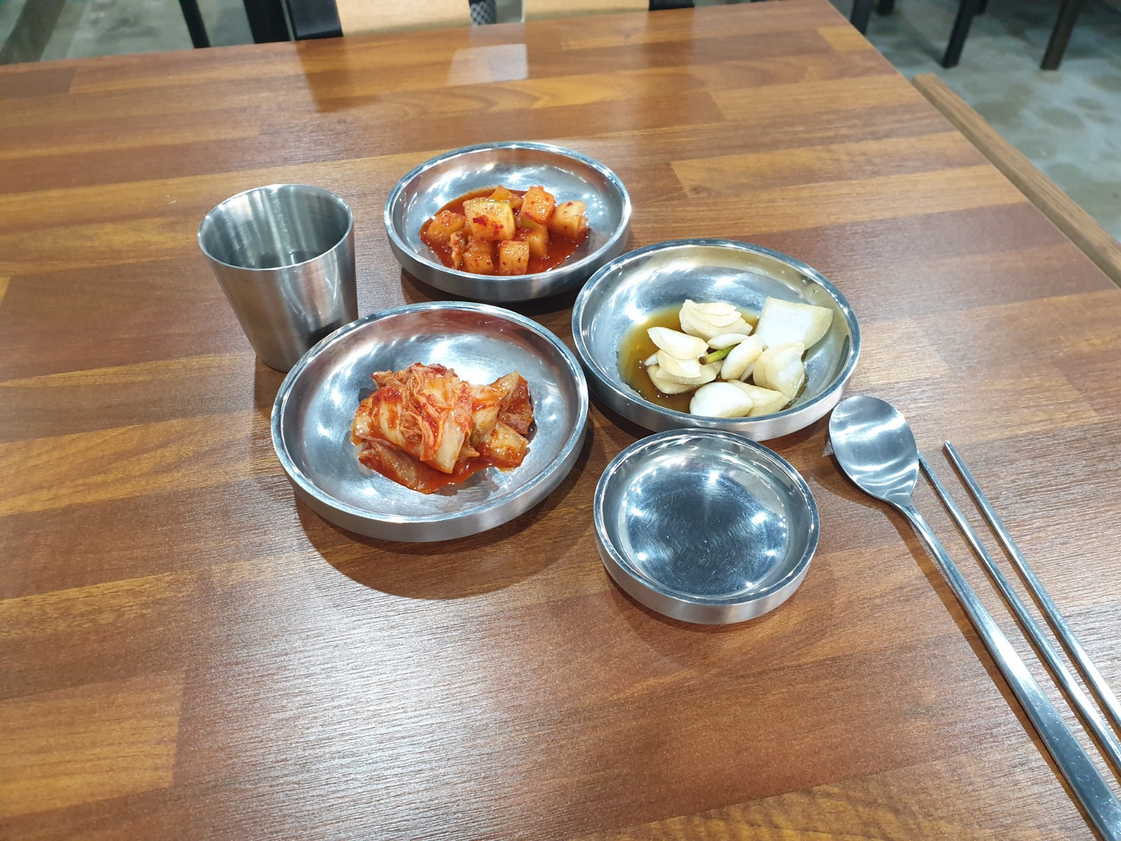 기본 반찬은 깍두기와 간장 양파절임 그리고 김치 입니다.