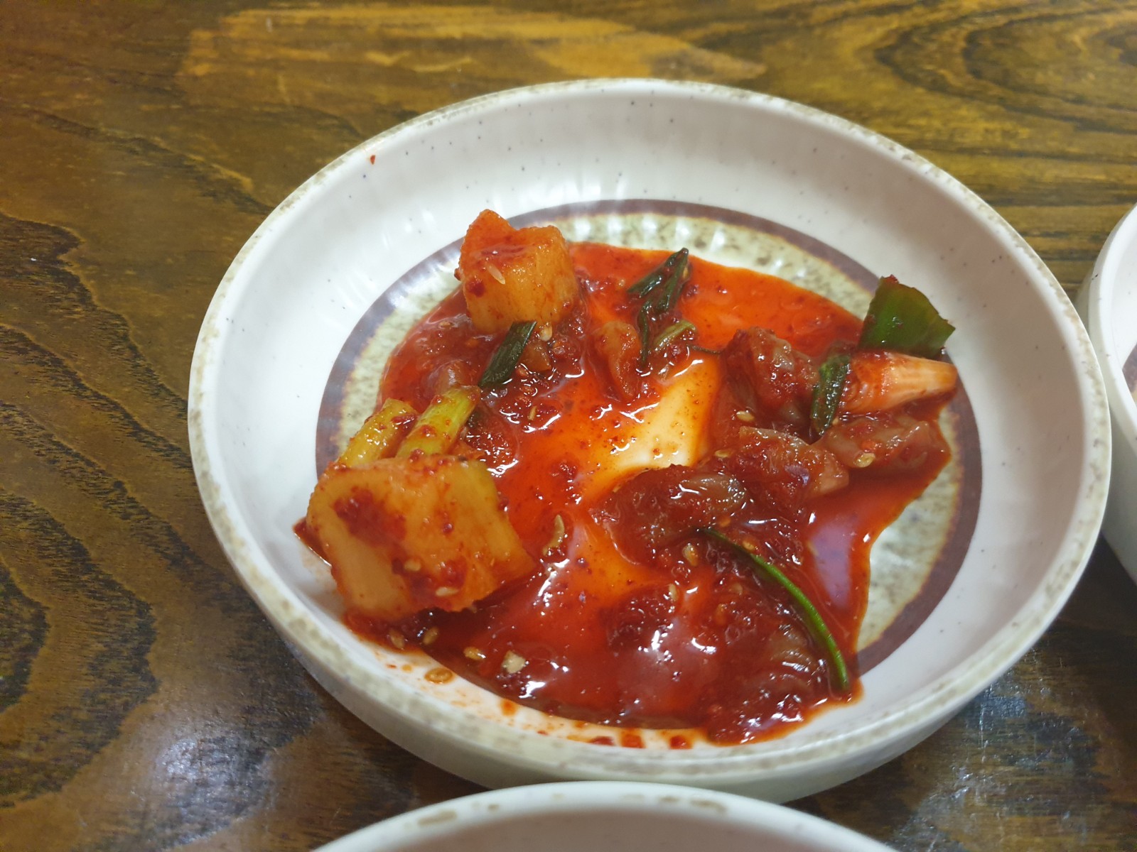 먹다보니 독특한게 깍뚜기에 오징어 젓갈을 버무려놨더군요.