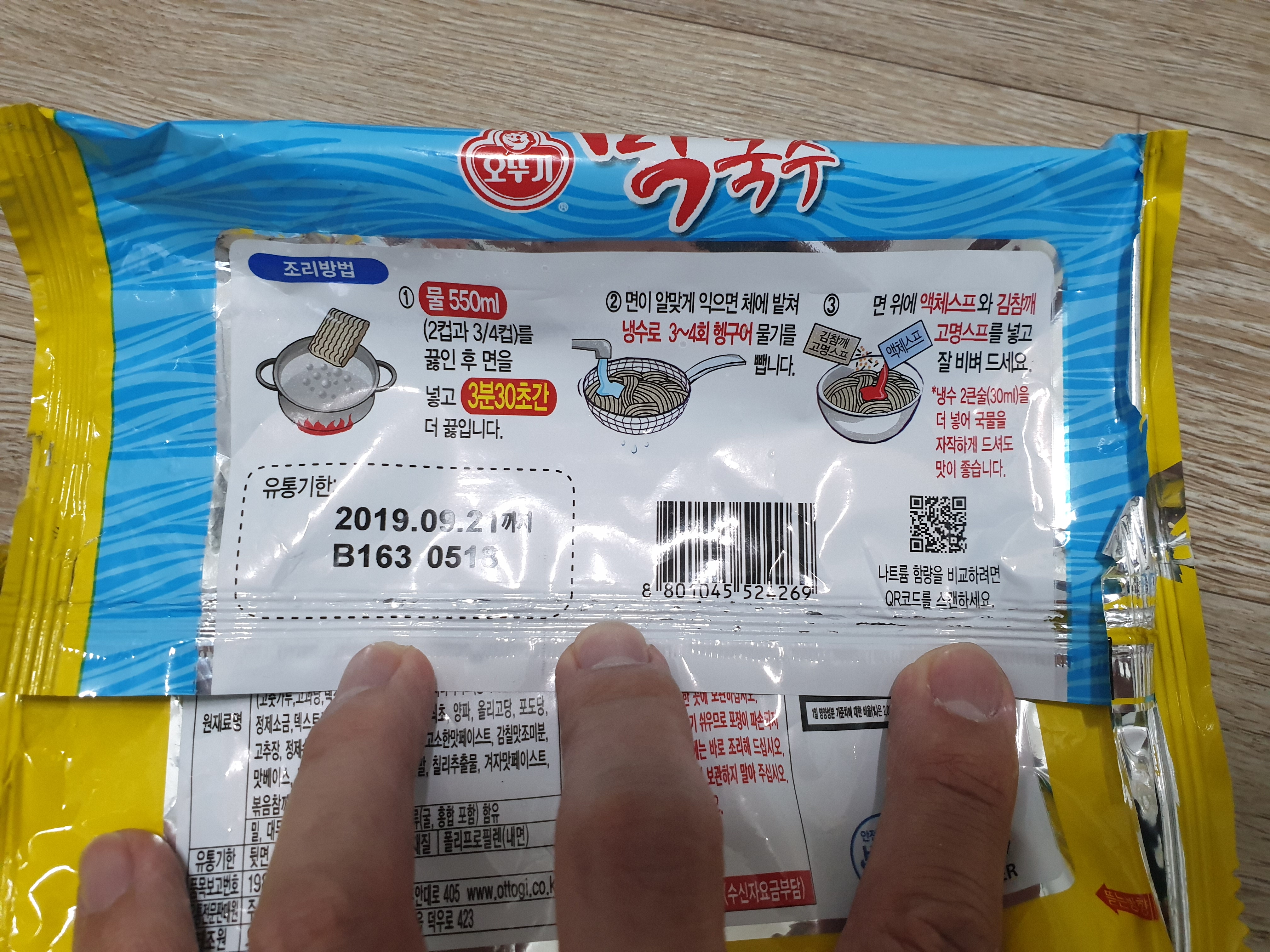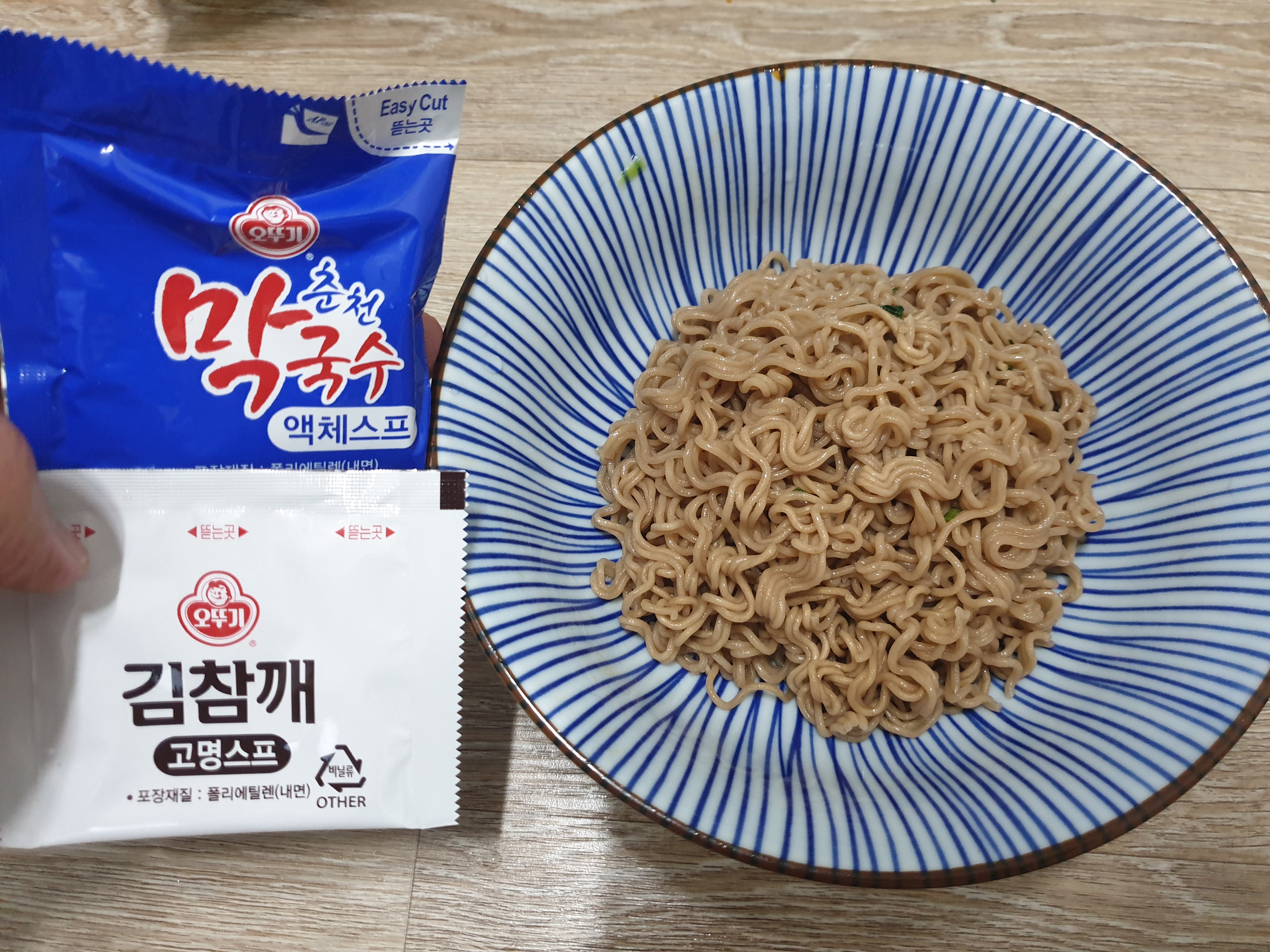 비닐포장에 나와 있는 광고처럼 가는 면발에 탄력있고 쫄깃합니다.
