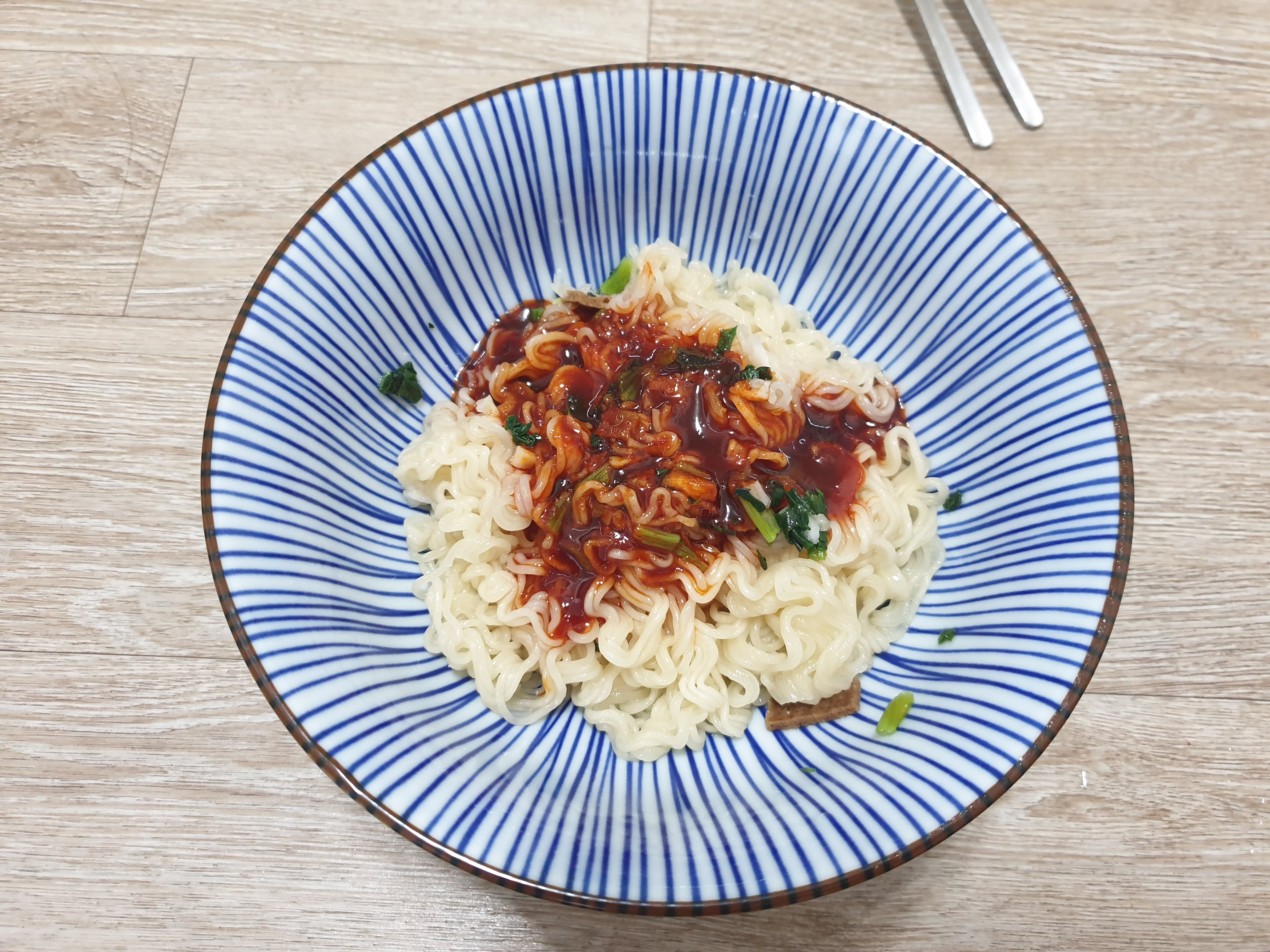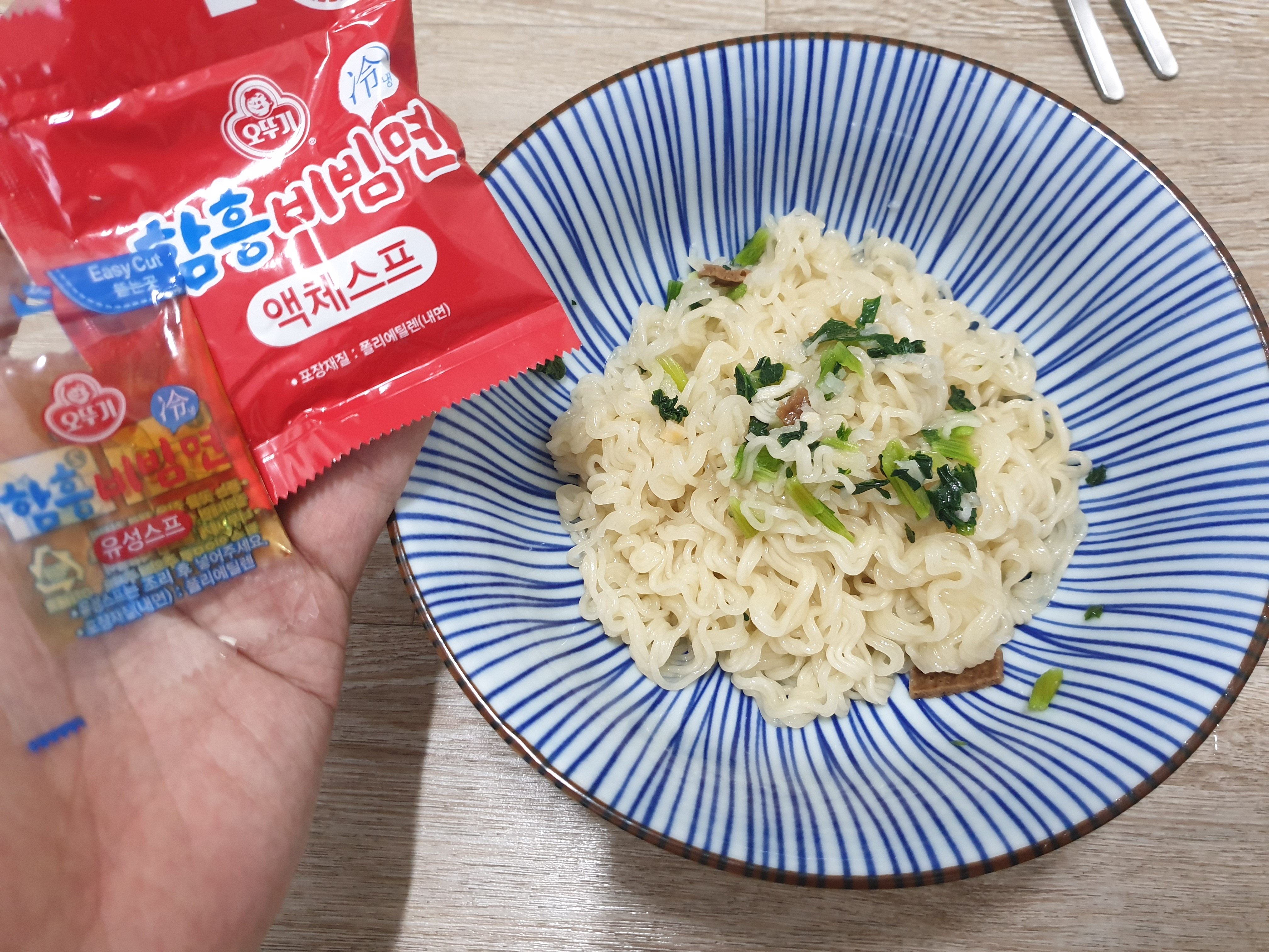 포장에 나와있는데로 요리해서 앙념장과 고명스프를 한번 넣어보겠습니다.