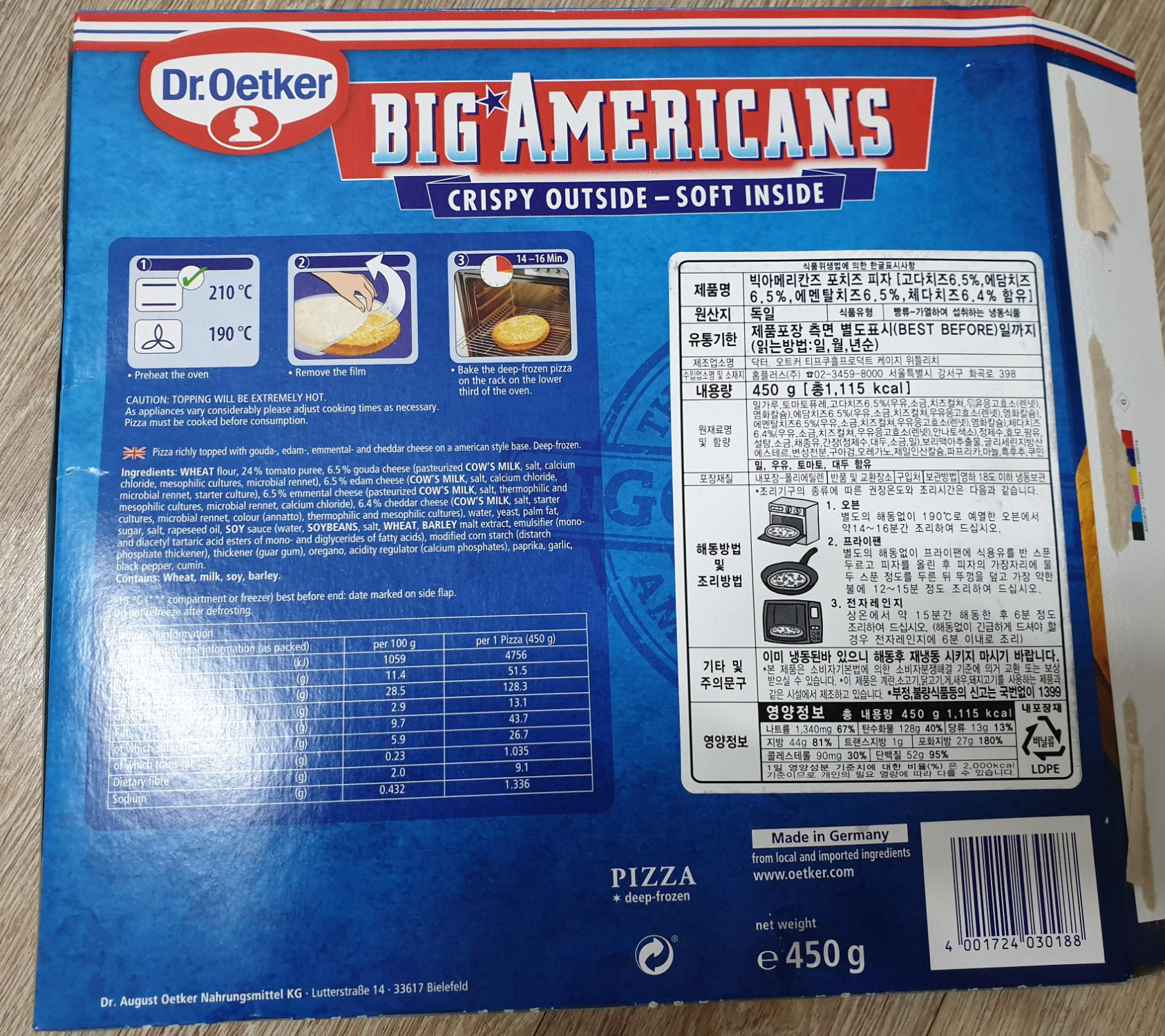 닥터오트커(Dr.Oetker)에서 나온 빅아메리칸스(BIG AMERICANS)의 4치즈(4CHEESE)를 먹어봤습니다!!