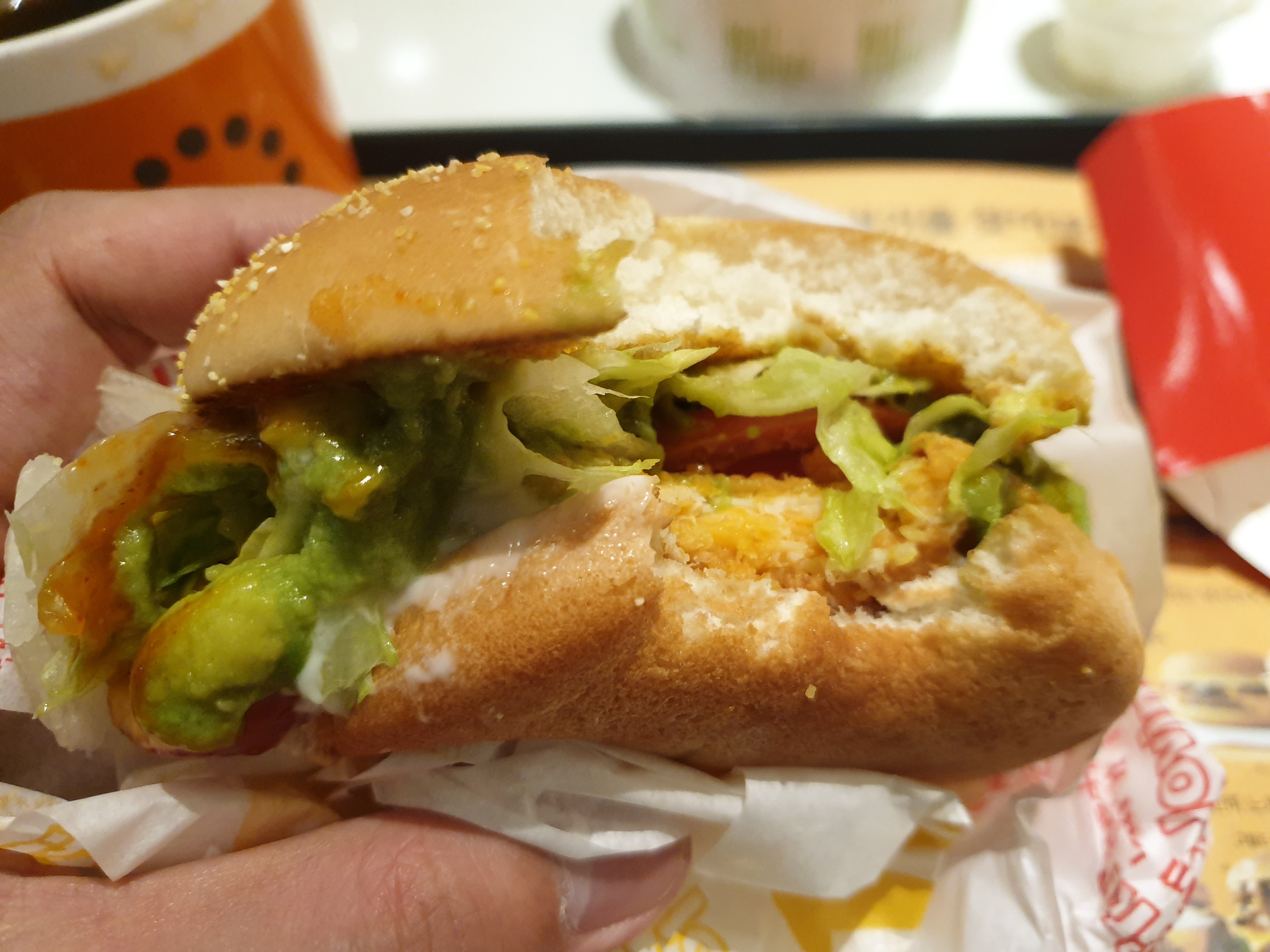 버거는 전에 먹었던 『아보카도 토마토 상하이 버거』와 다르지 않습니다.