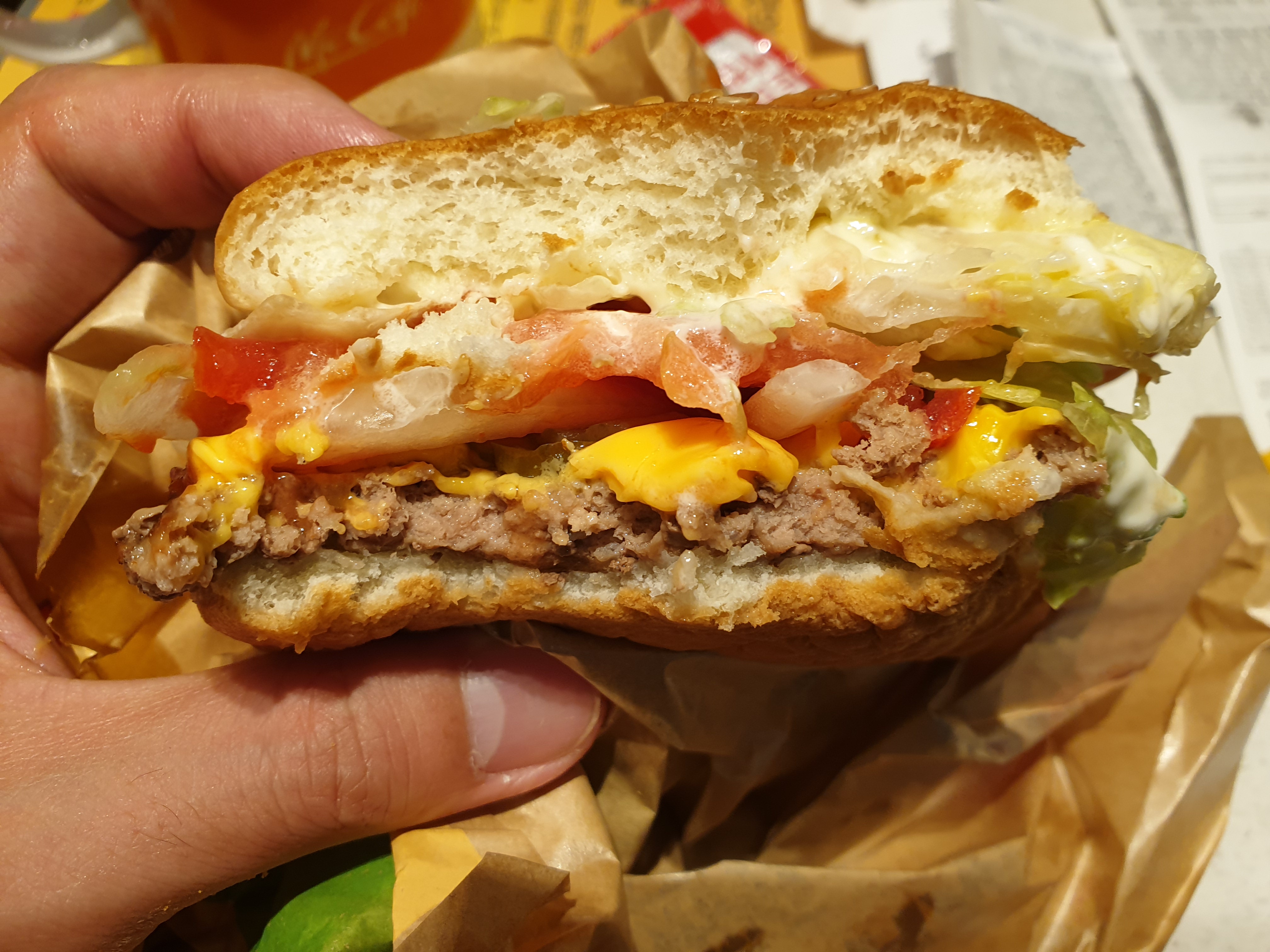 앞에 리뷰했던 치즈 와퍼보다 치즈가 두배는 들어간거 같습니다.
