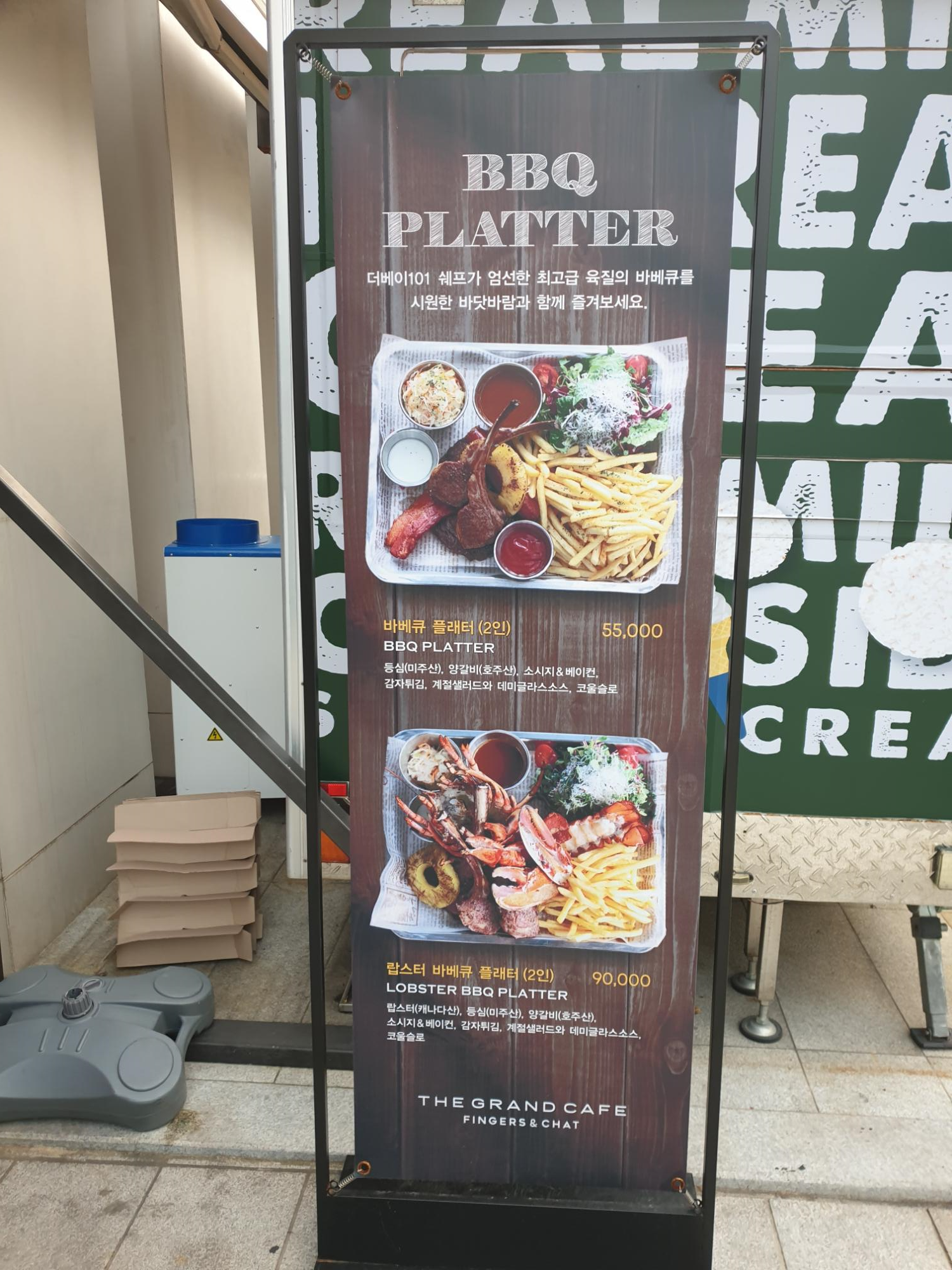 더베이101 1층 입구에 보면 식당들의 메뉴와 가격이 나와 있어요.
