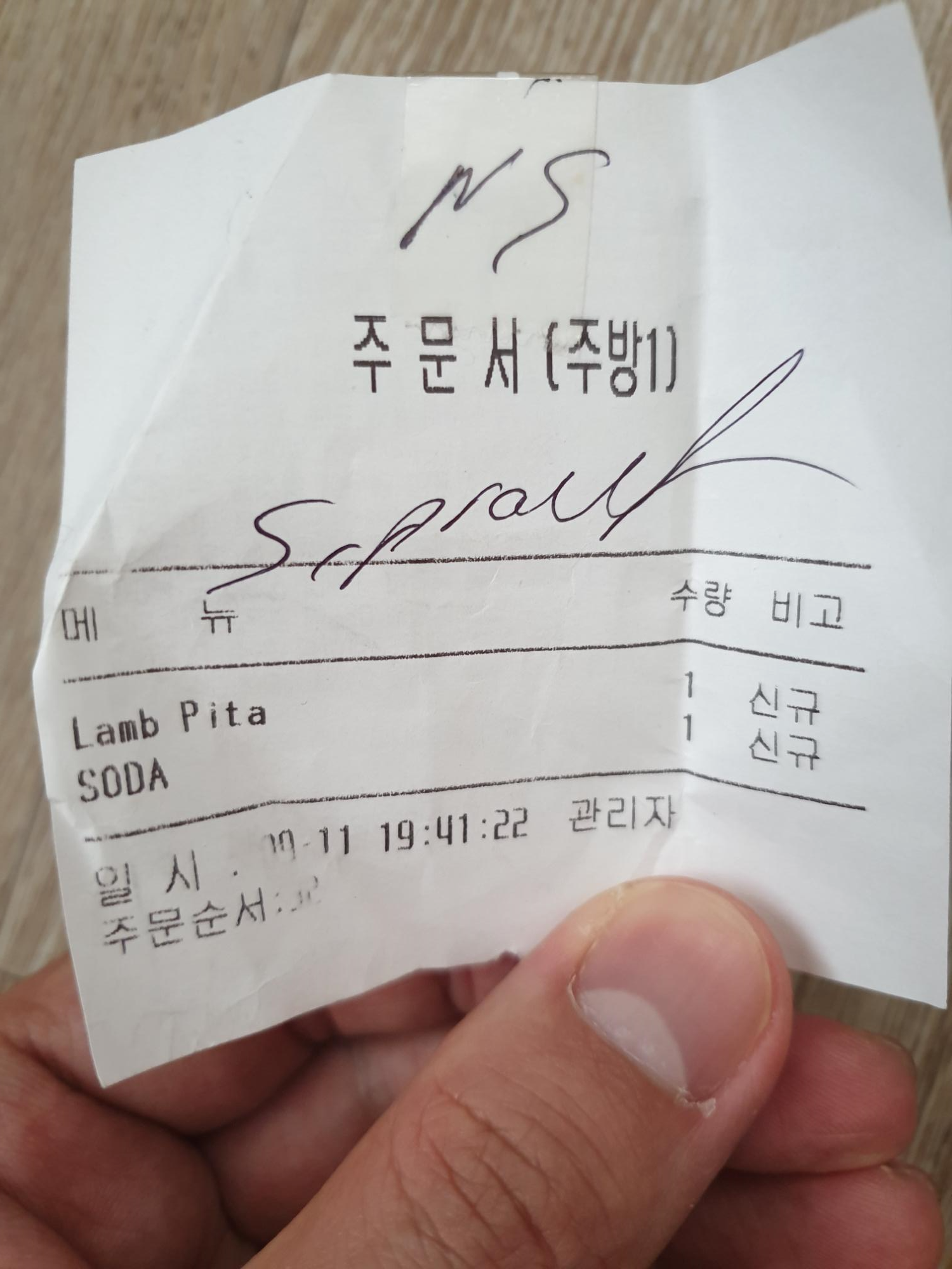 음식을 받으면서 눈에 띈건 주문서였어요.