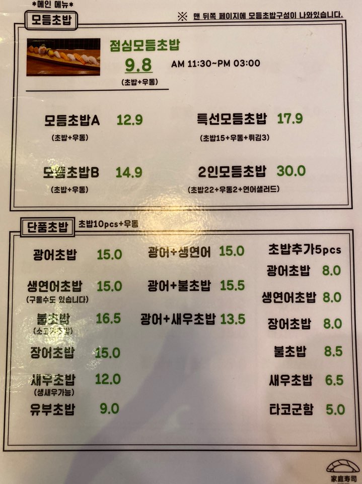 2명이서 먹기에 좋은 초밥집이라고 정평이 나있는 『가정초밥』에 가봤습니다.