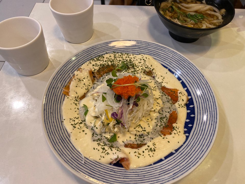 샐러드소스가 듬뿍 뿌려진 상태에서 연어와 같이 먹어보니 맛있네요.