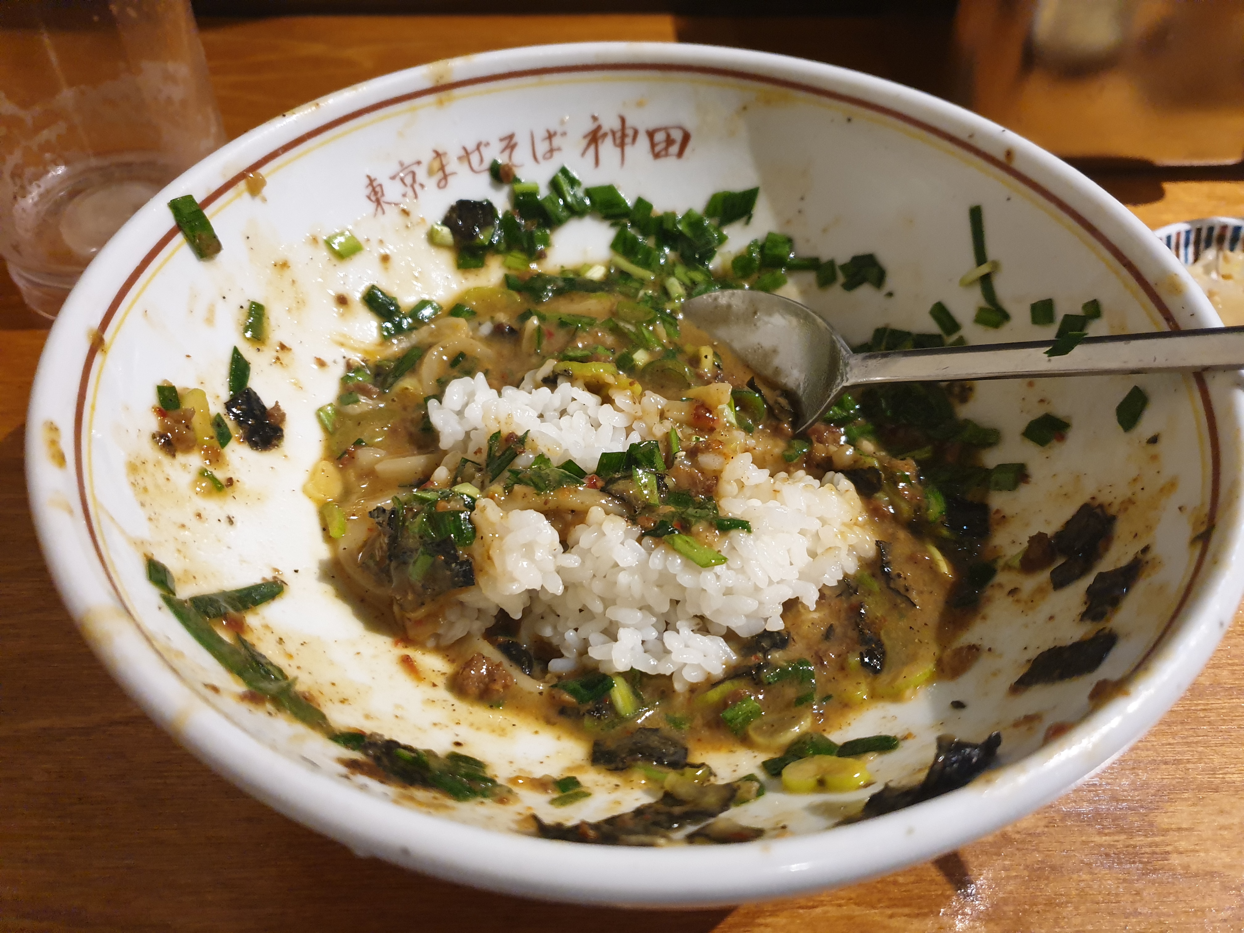 그리고는 면을 다 먹고 나면 주방에 밥을 달라고 해서 밥을 남은 소스에 비벼먹으면 됩니다.