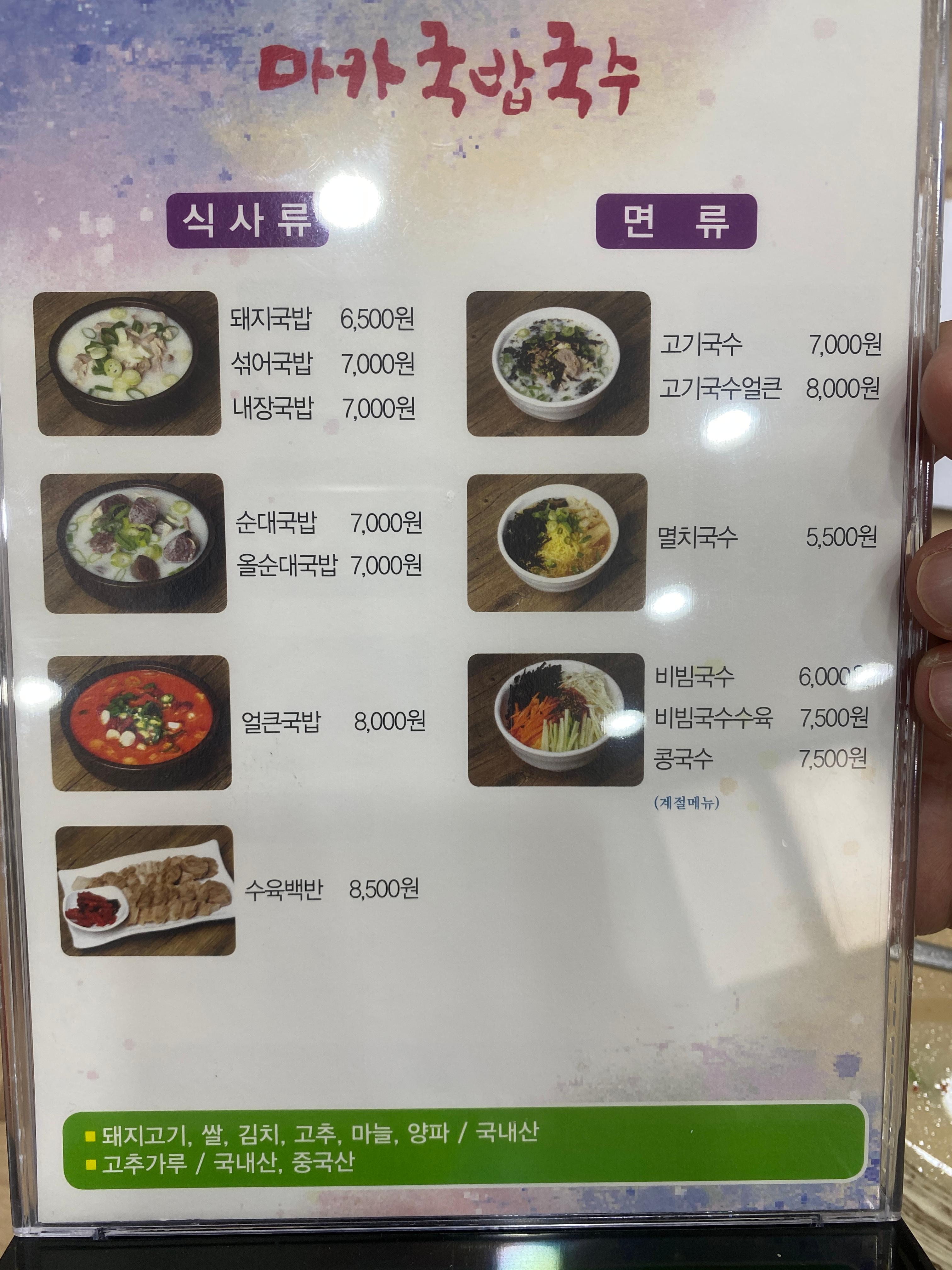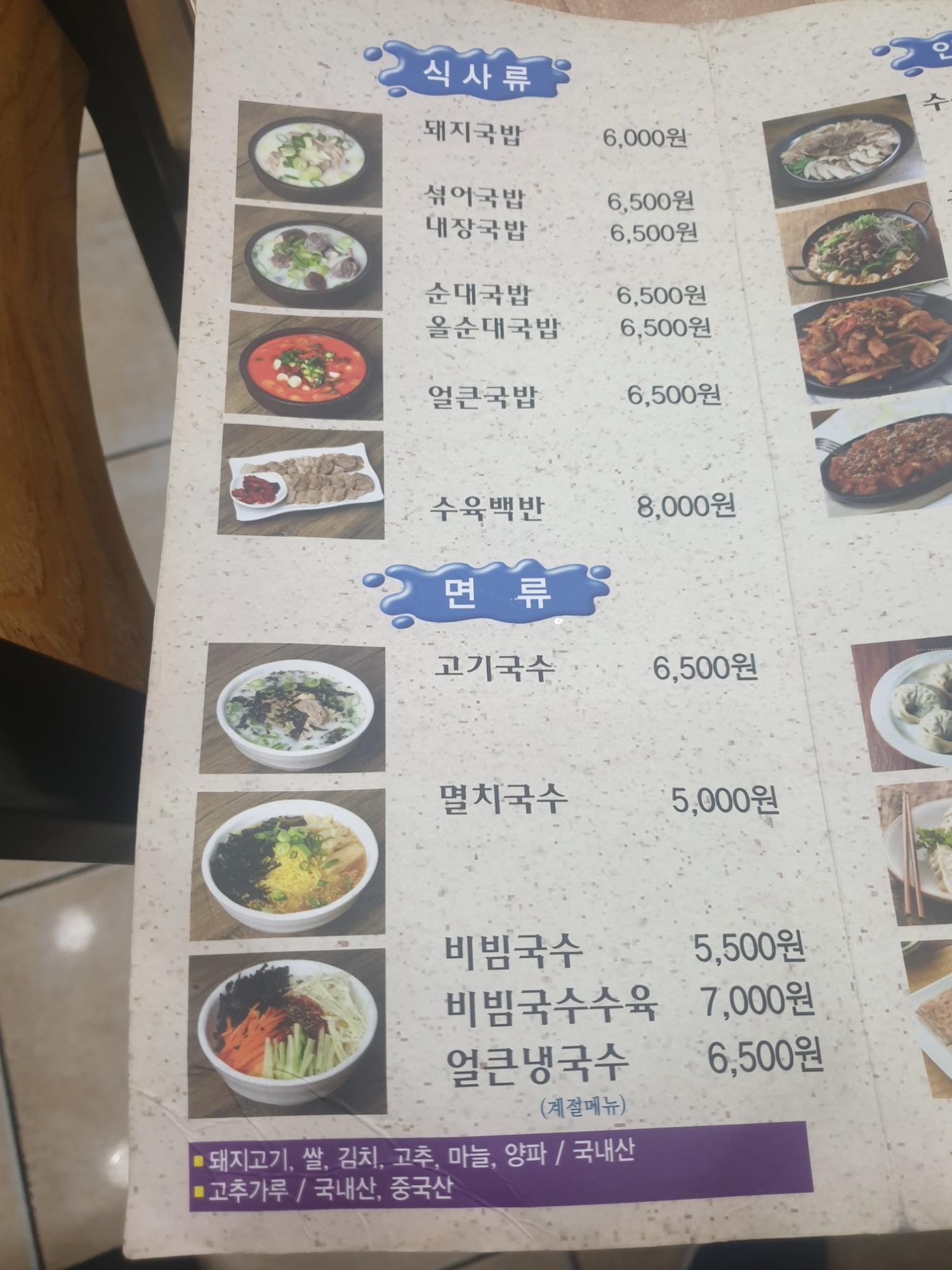 저는 그 중에서 수육백반과 고기국수를 좋아힙니다.