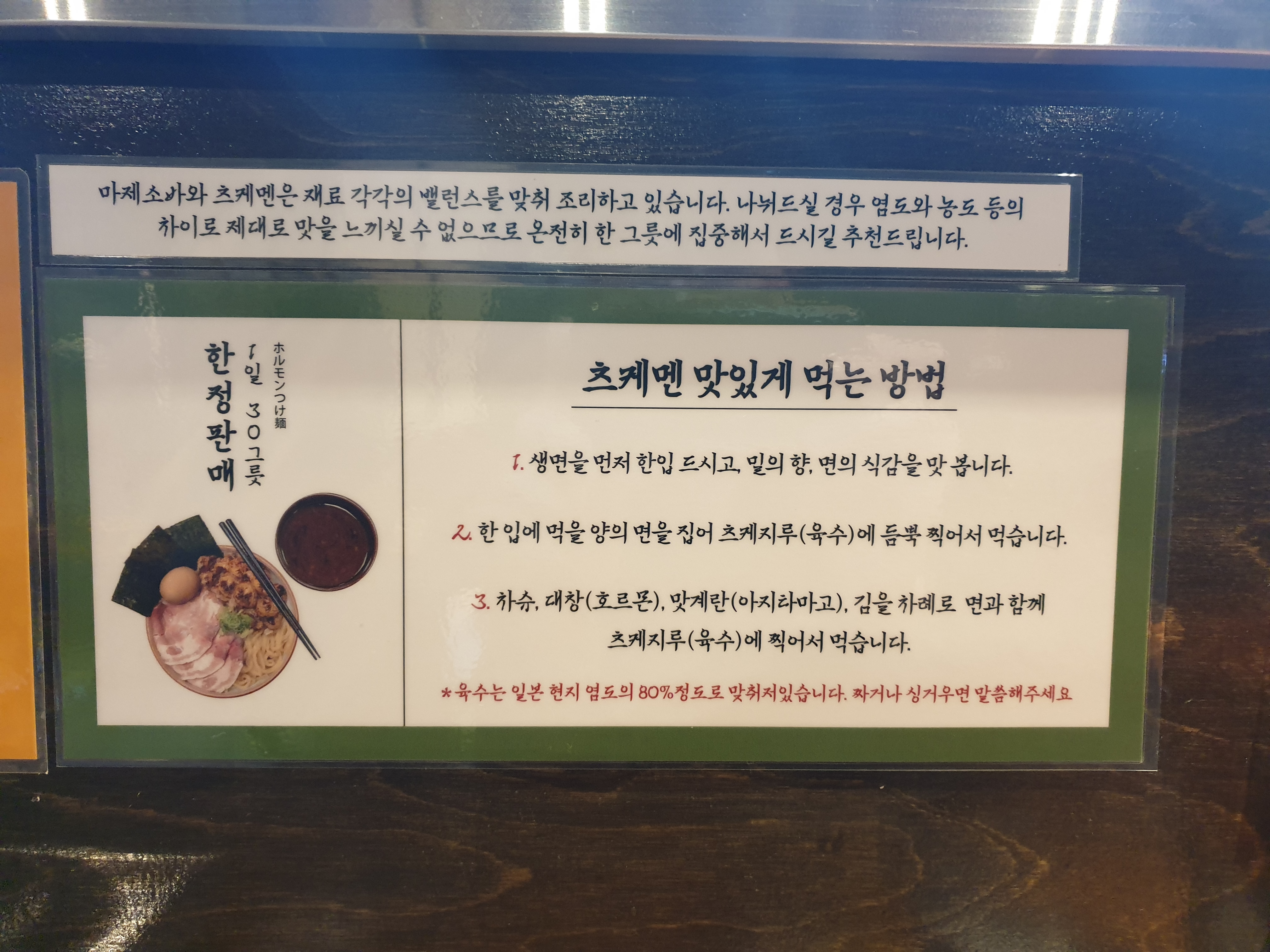 *육수는 일본 현지 염도의 80%정도로 맞춰져 있습니다. 짜거나 싱거우면 말씀해주세요.