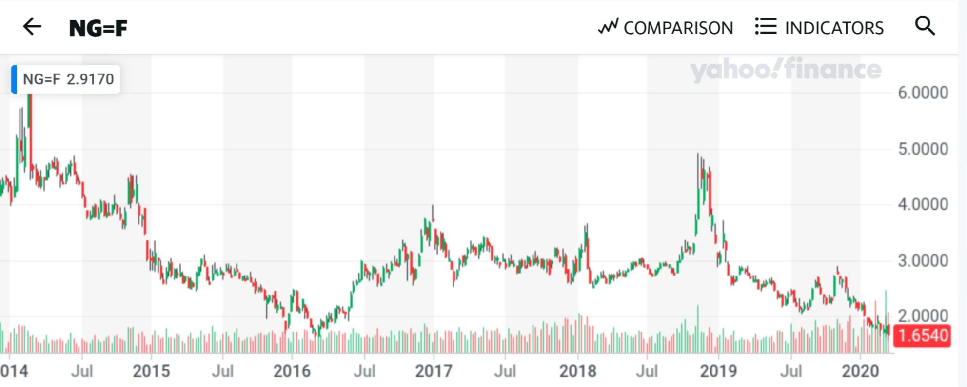 현재의 천연가스선물가격은 생산단가로 알려진 원가(2달러/MMBtu)를 하회하고 있기 때문에