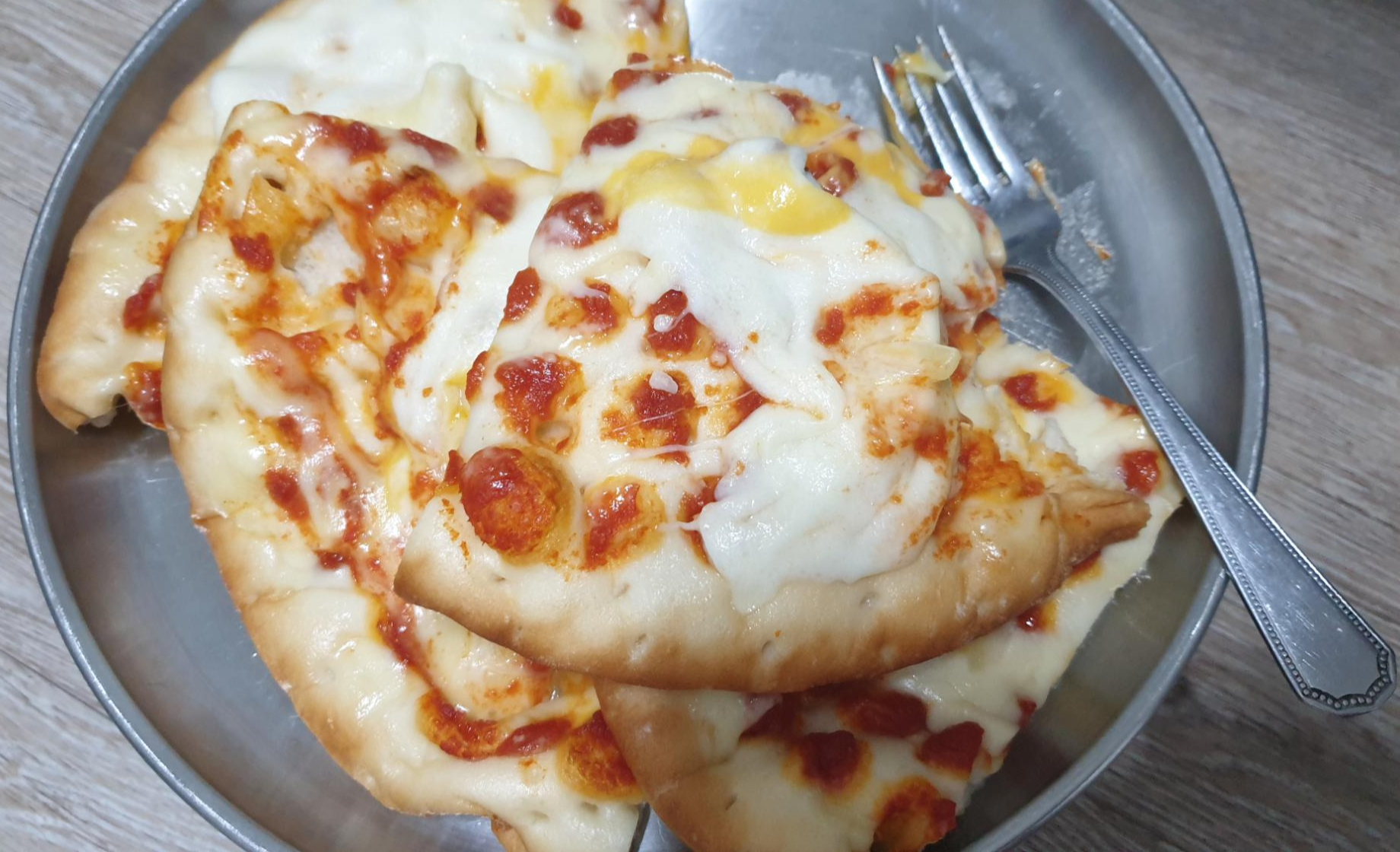 찜통에 찌다보니 피자를 한꺼번에 조리하진 못하고 한 조각씩 한 조각씩 조리했어요.