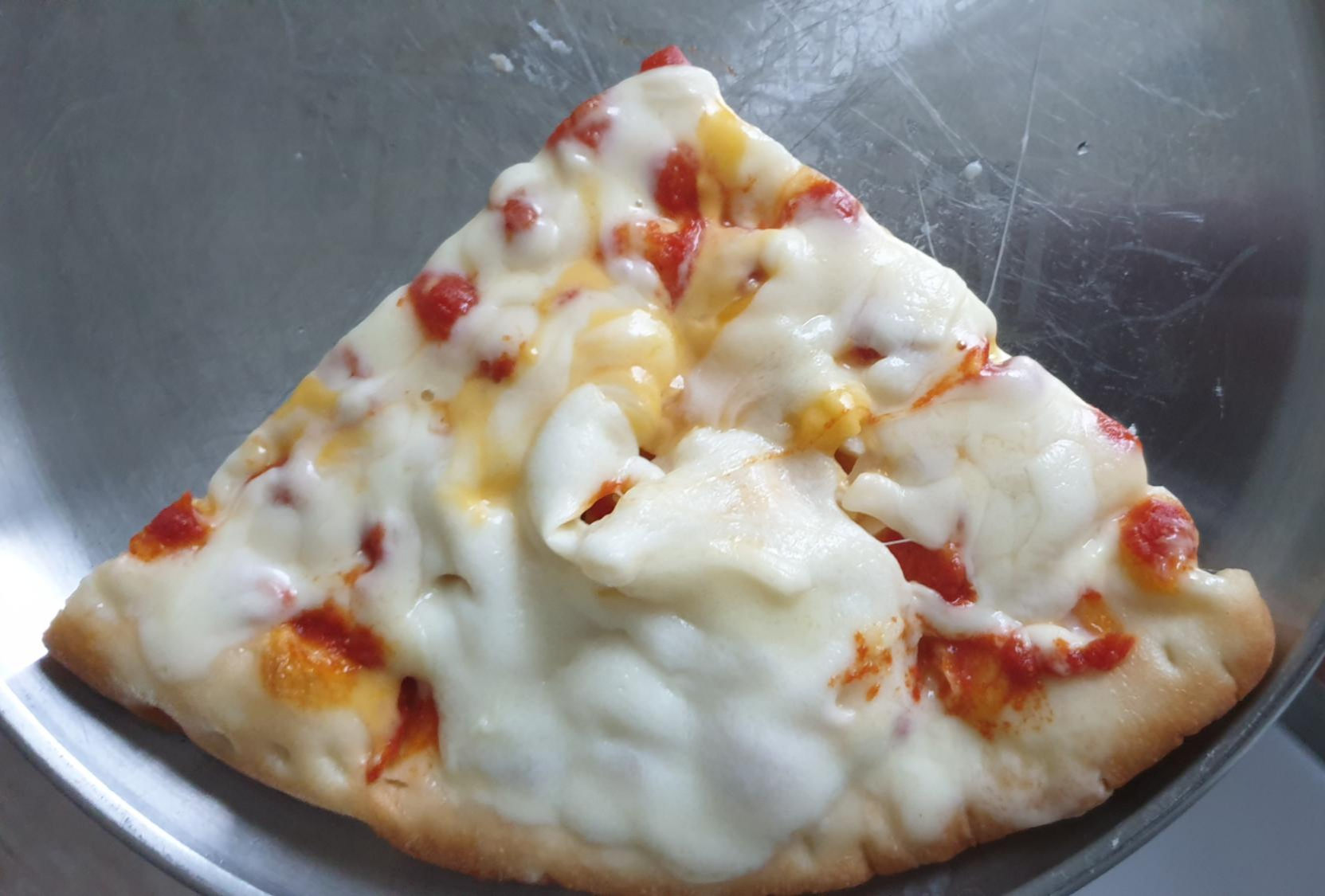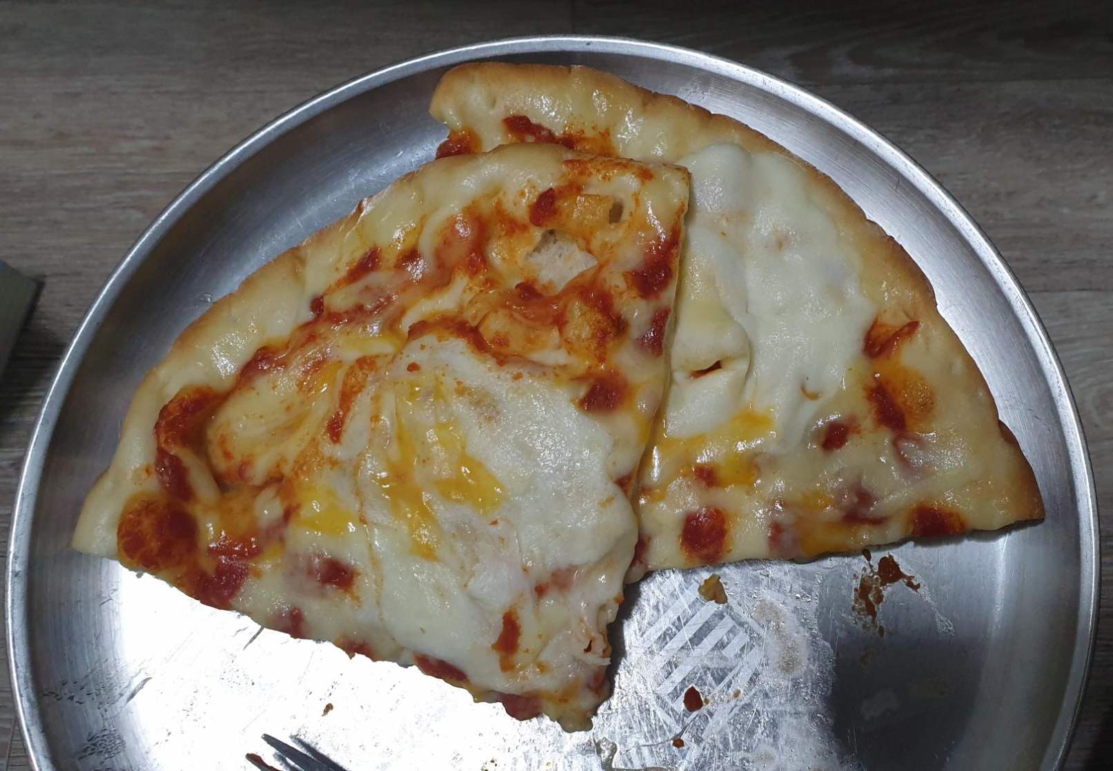 전자렌지 오븐에서 가열하면 피자 도우에 있던 수분들이 다 날아가버려서 맛이 없는 것 같더라구요.
