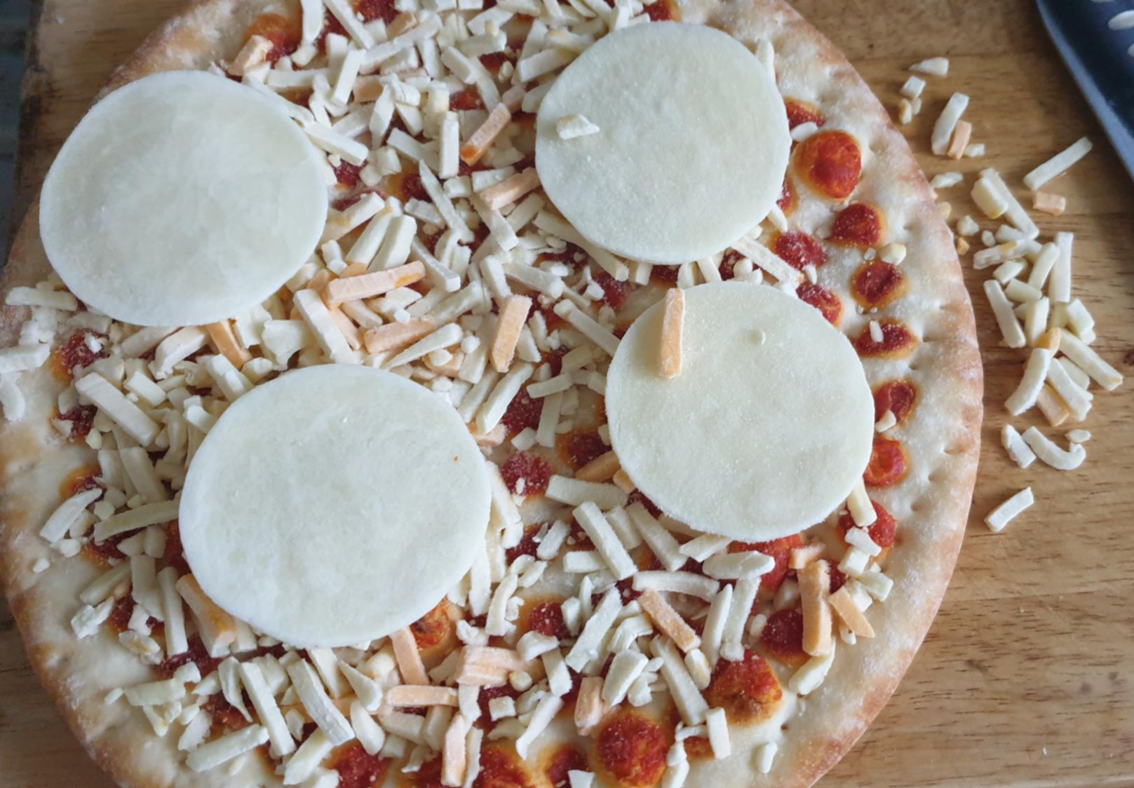 모짜렐라, 체다, 파마산, 프렌치에멘탈, 프레쉬모짜렐라커드, 고다까지 피자에 다른 것을 토핑하는 대신에