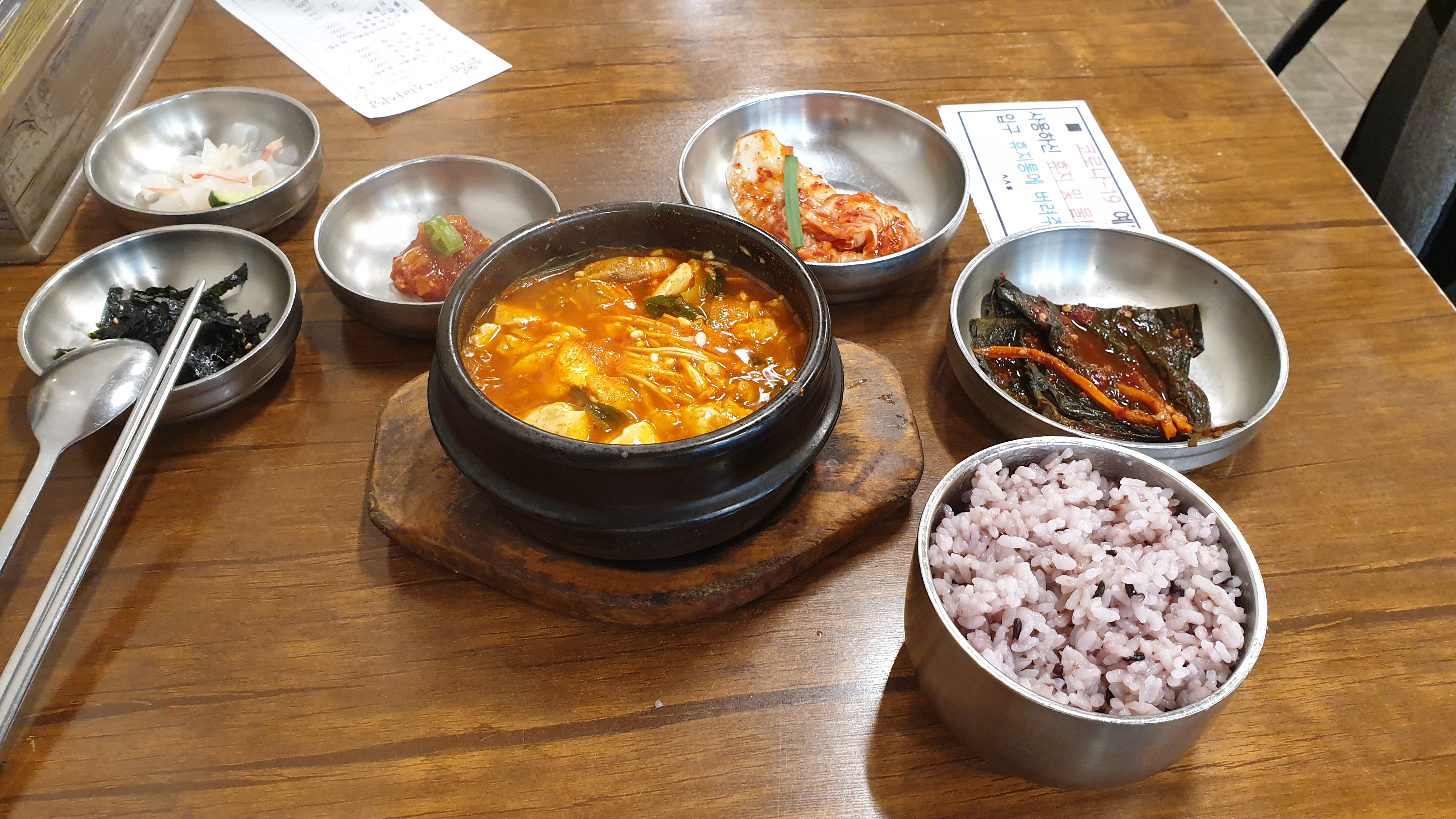 그래서 어쩔 수 없이 그냥 순두부찌개를 시켰습니다.