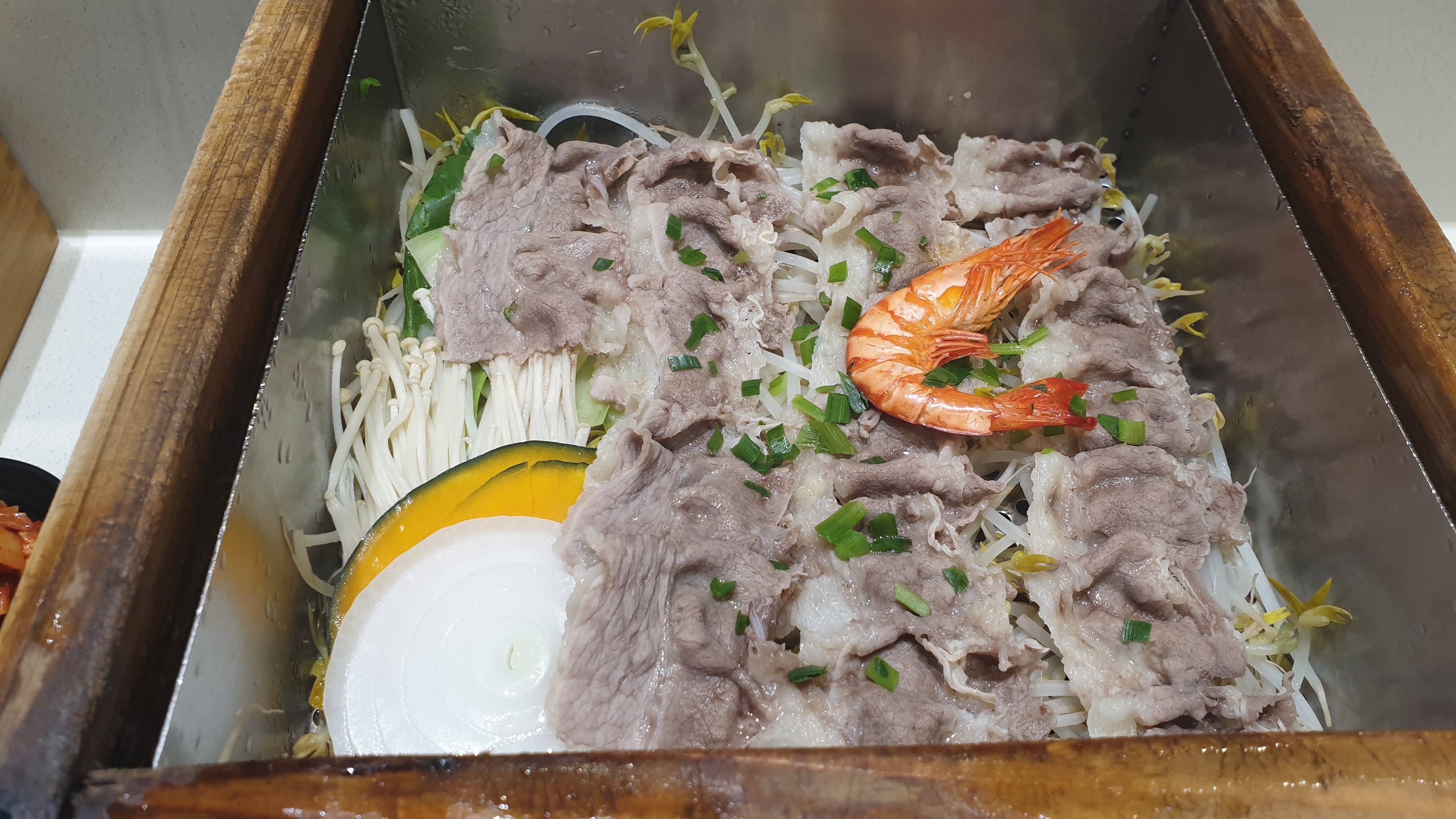 저는 소고기 편백에 왕새우가 추가되는 메뉴를 주문했습니다.