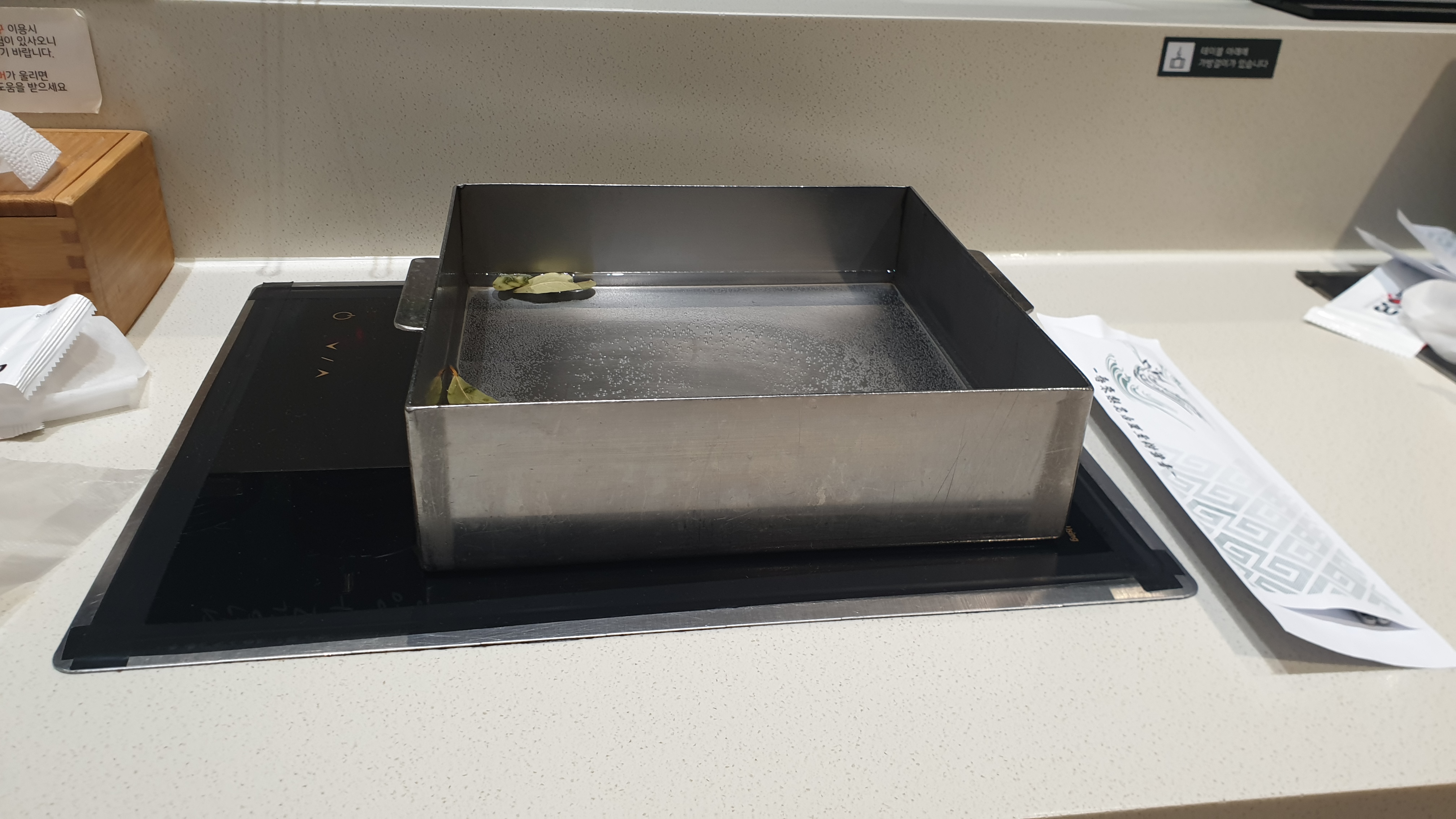 기다리니깐 편백나무판을 조리기구에 바로 올려주시네요.