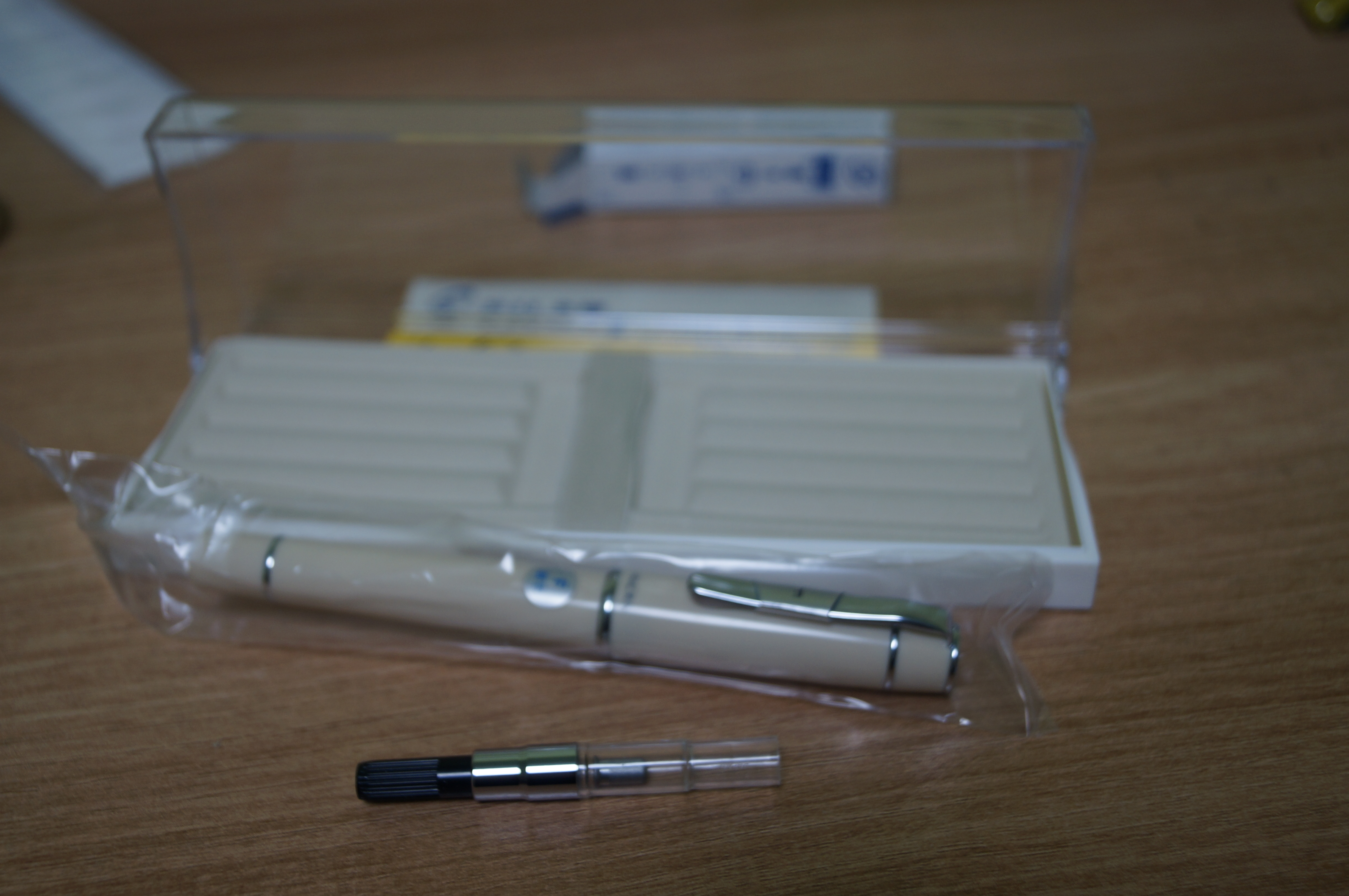 포장을 벗겨내면 만년필과 만년필잉크를 리필할 수 있는 컨버터가 들어있습니다.