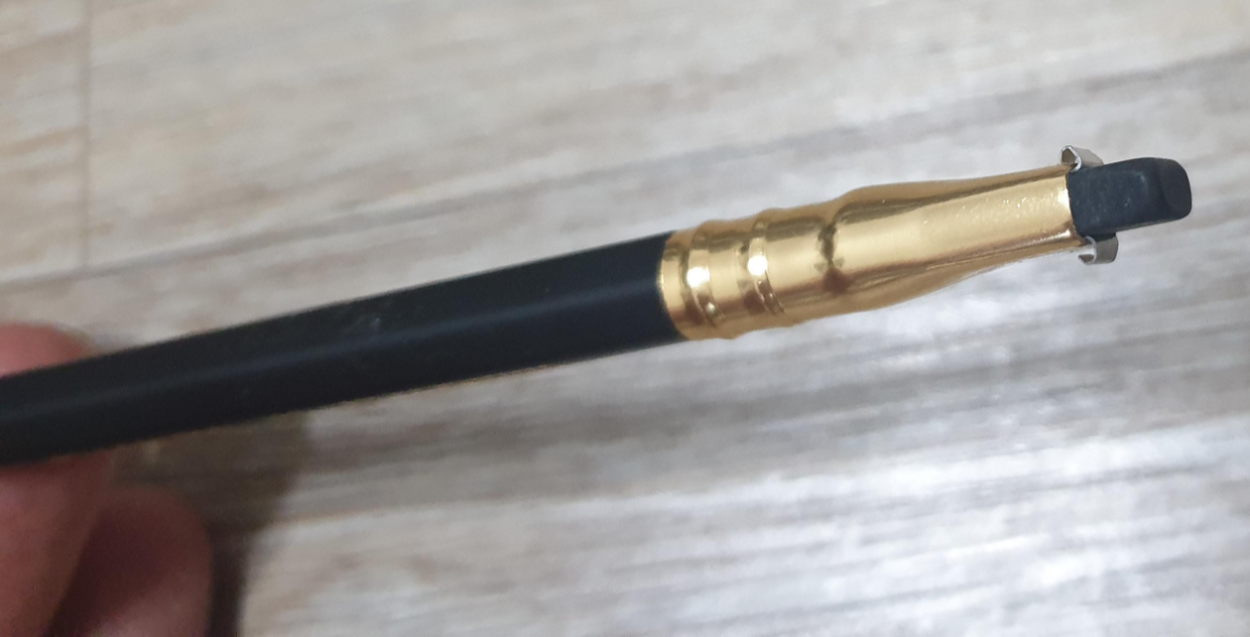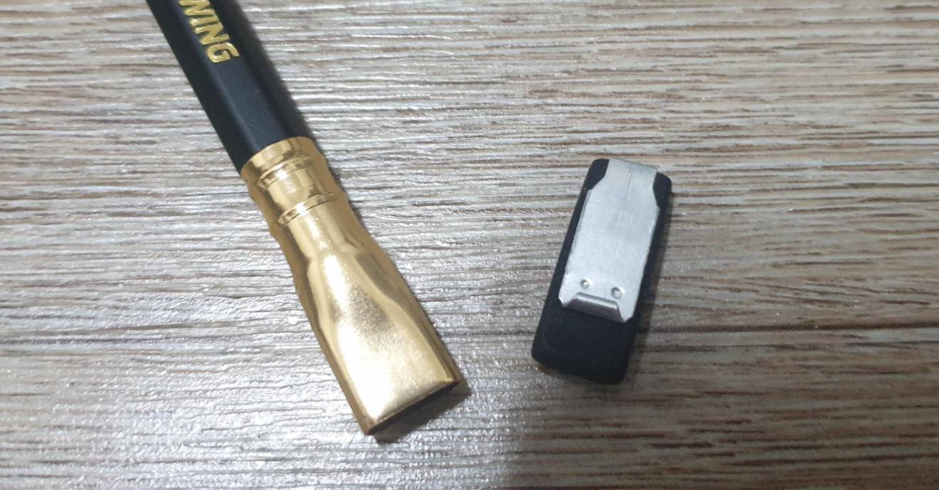 뒷부분의 지우개가 다른 연필들하고는 다르게 되어 있어요.