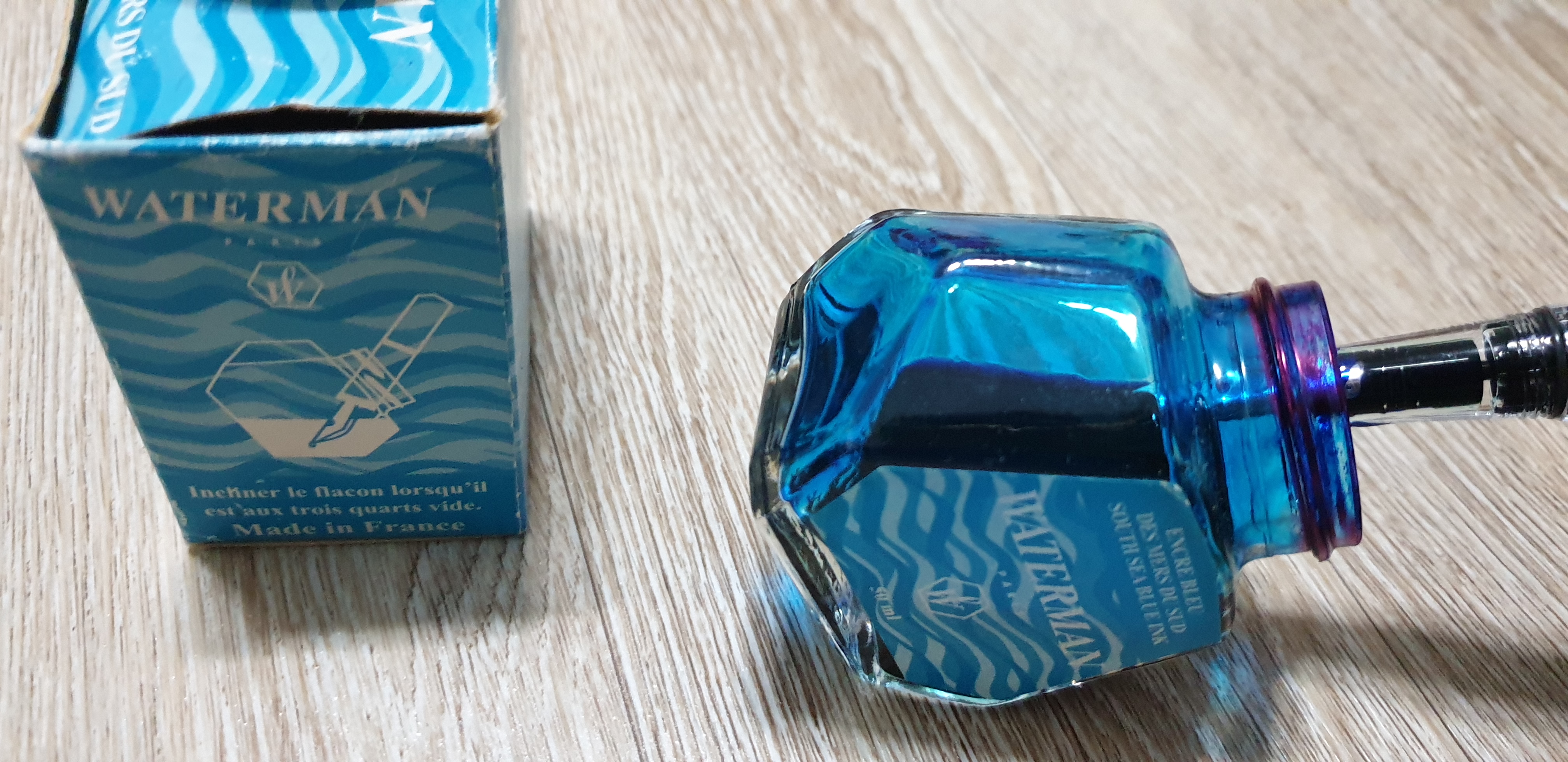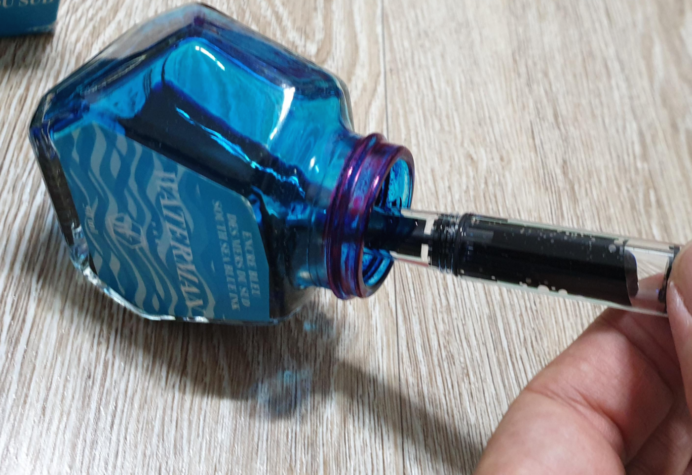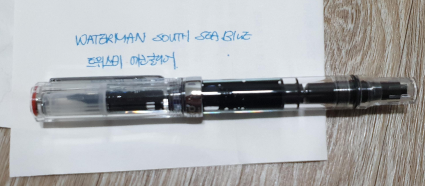제가 가지고 있는 워터맨의 SOUTH SEA BLUE 잉크를 넣어봤습니다.