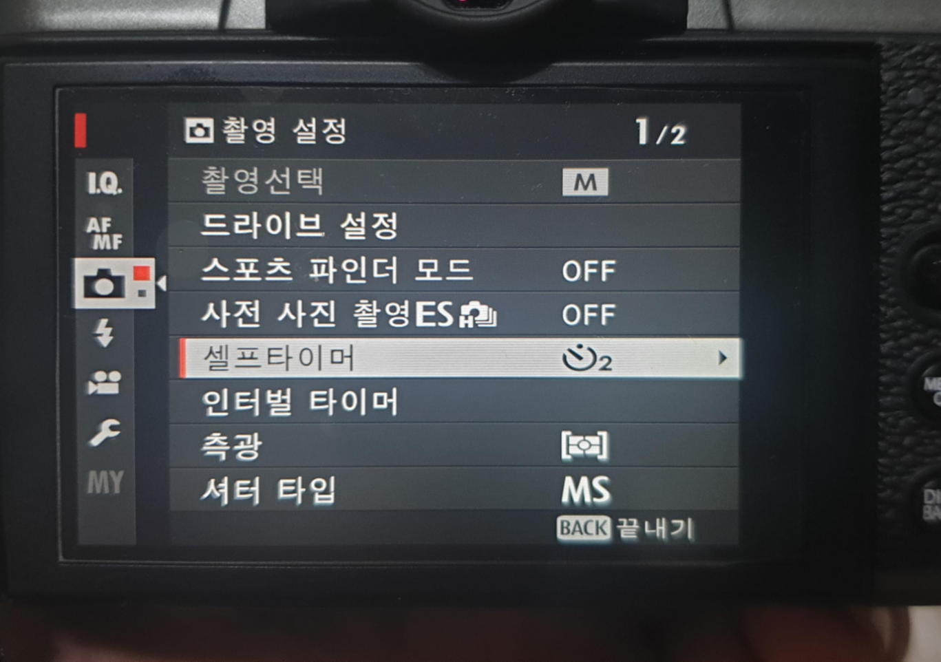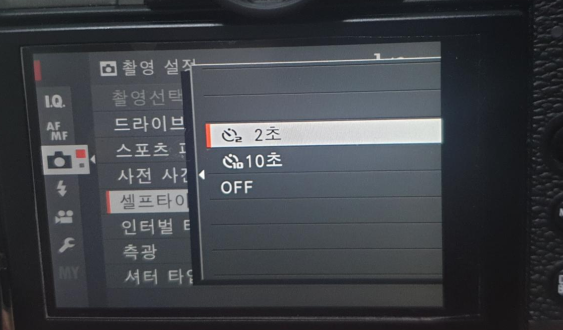 메뉴에서 셀프타이머에서 설정할 수 있습니다.