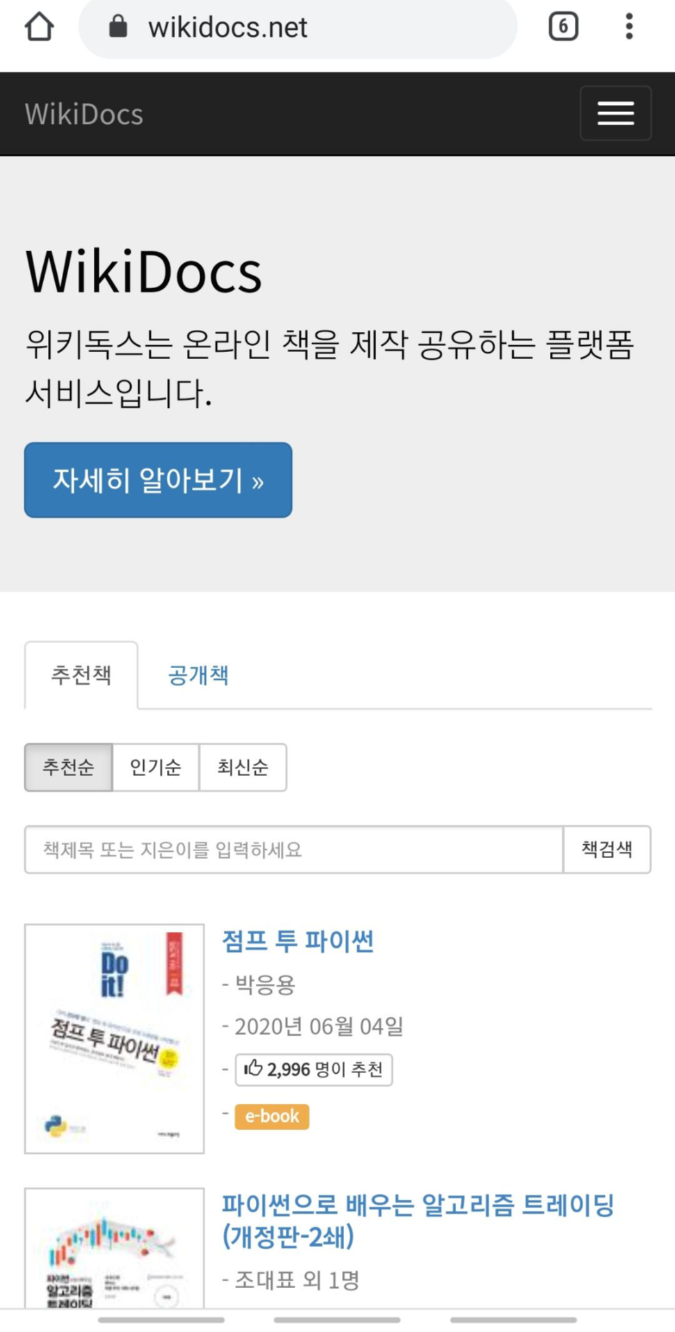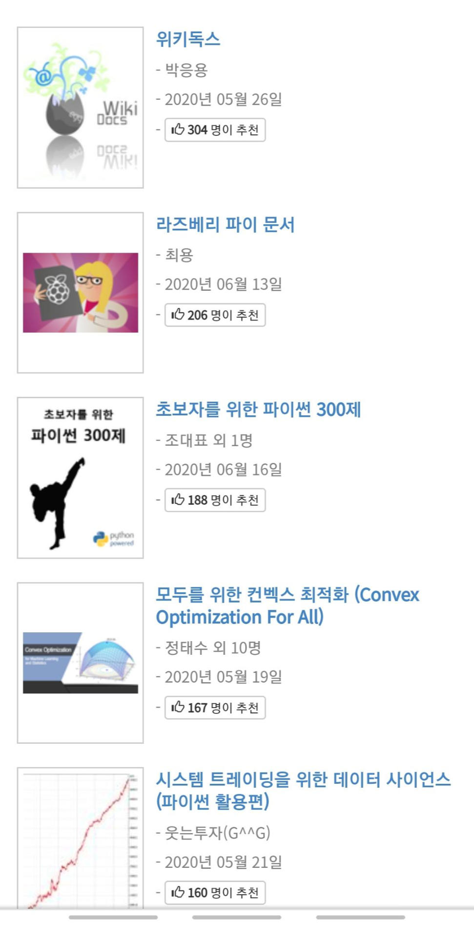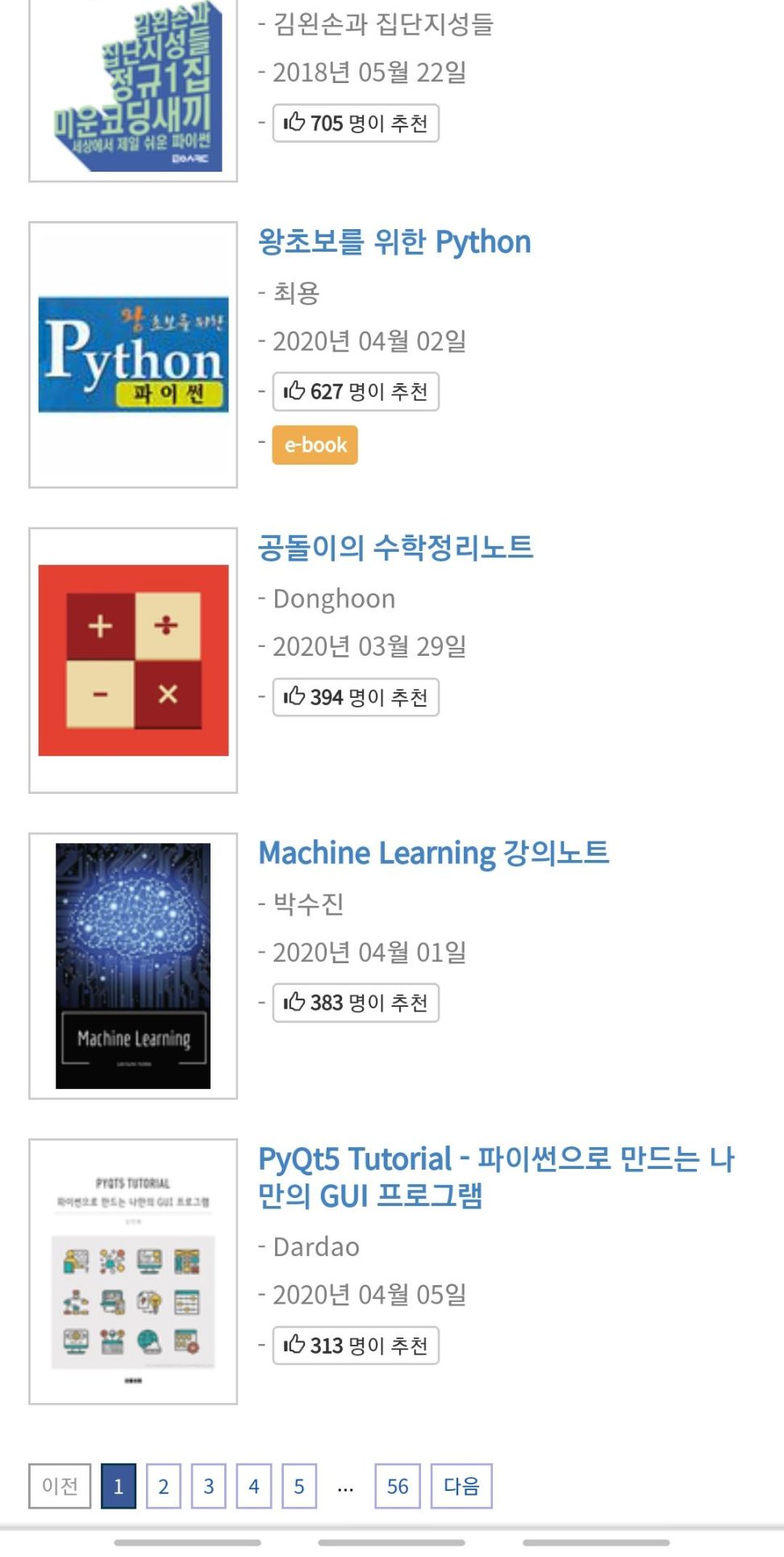 그리고 지금 출간된 유명한 파이썬 프로그래밍 책이나 데이터관리 책이 무료로 공개되어 있습니다.