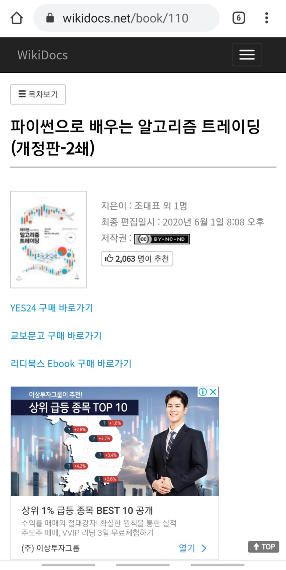 아래에서 소개할 책인 <파이썬으로 배우는 알고리즘 트레이딩>은 사서 봤습니다.