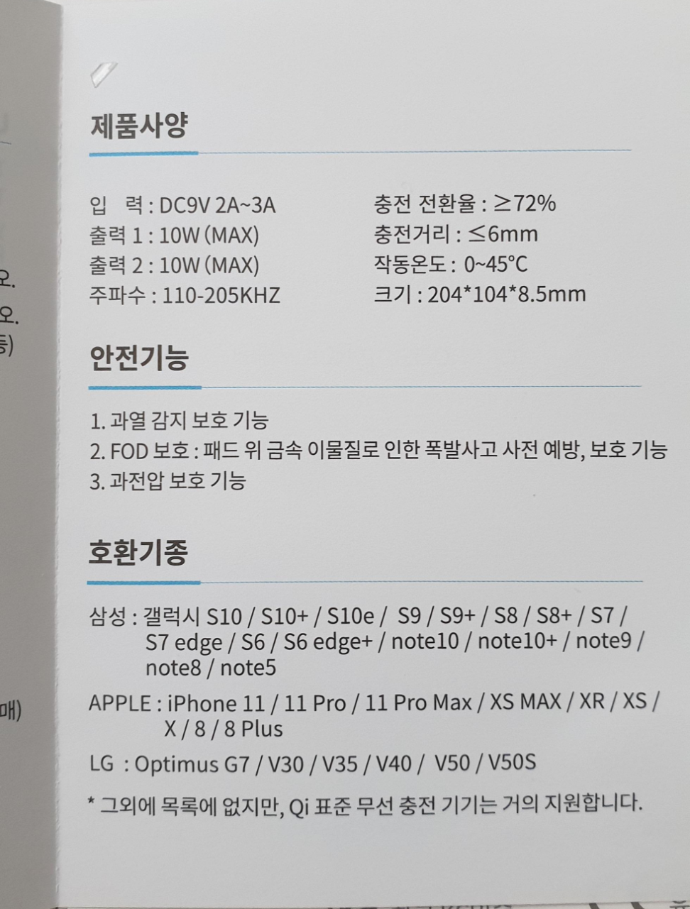 그외에 QI 표준 무선 충전기기는 거의 지원한다고 하네요.
