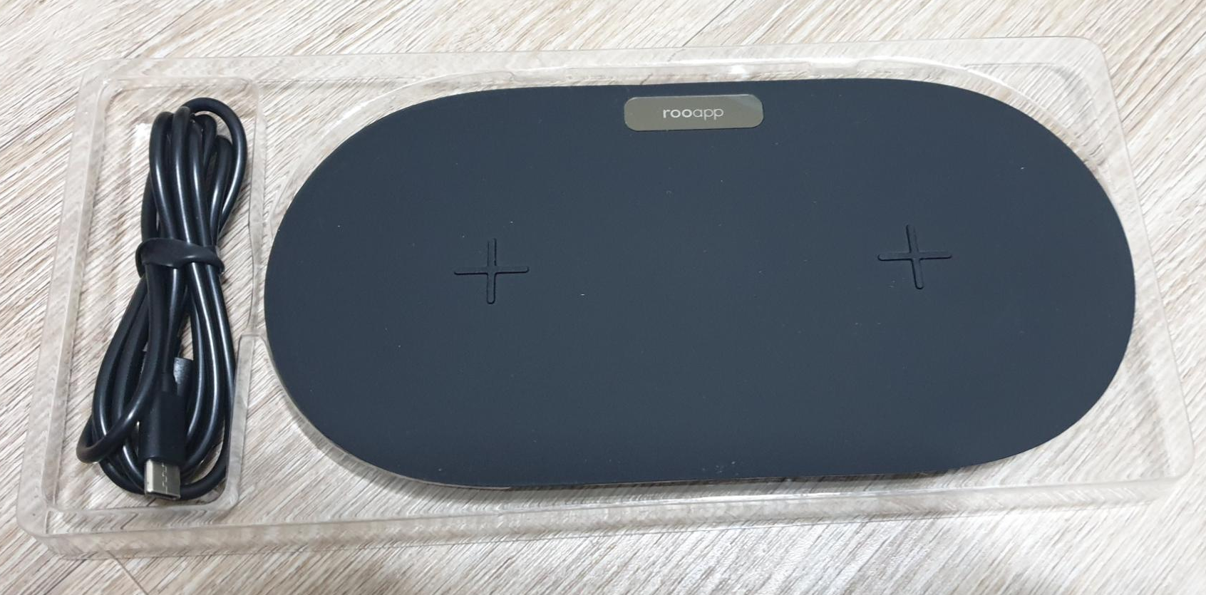 루앱의 무선충전패드는 무선충전패드와 충전케이블로만 구성되어 있습니다.