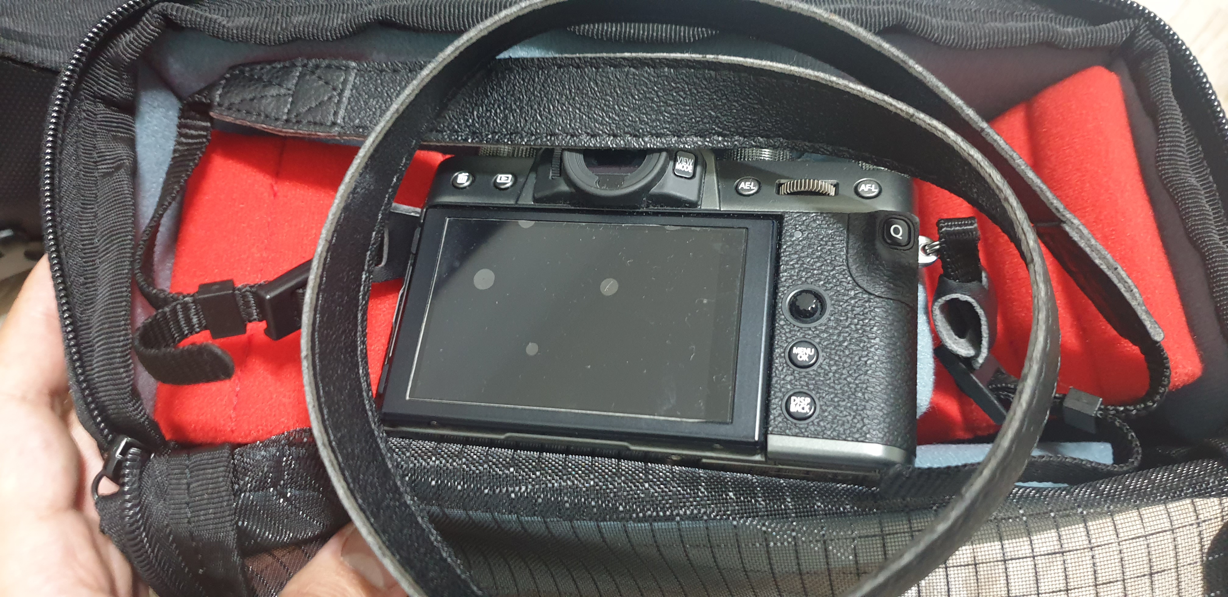 제 카메라는 미러리스 카메라라서 그렇게 공간을 많이 차지 않아 넣기 충분하네요.