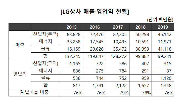 LG상사의 현황은 외형축소로 인해 영업이익률이 하락세를 보이고 있다. 물류부문의 성장에도 COVID-19 확산과 이에 따른 글로벌 산업재의 교역 위축, 석탄시황 악화 등으로 매출 규모는 전년동기대비 축소됐다. 에너지 팜부문의 적자 전환 등으로 영업이익률 전년동기대비 하락했다.
