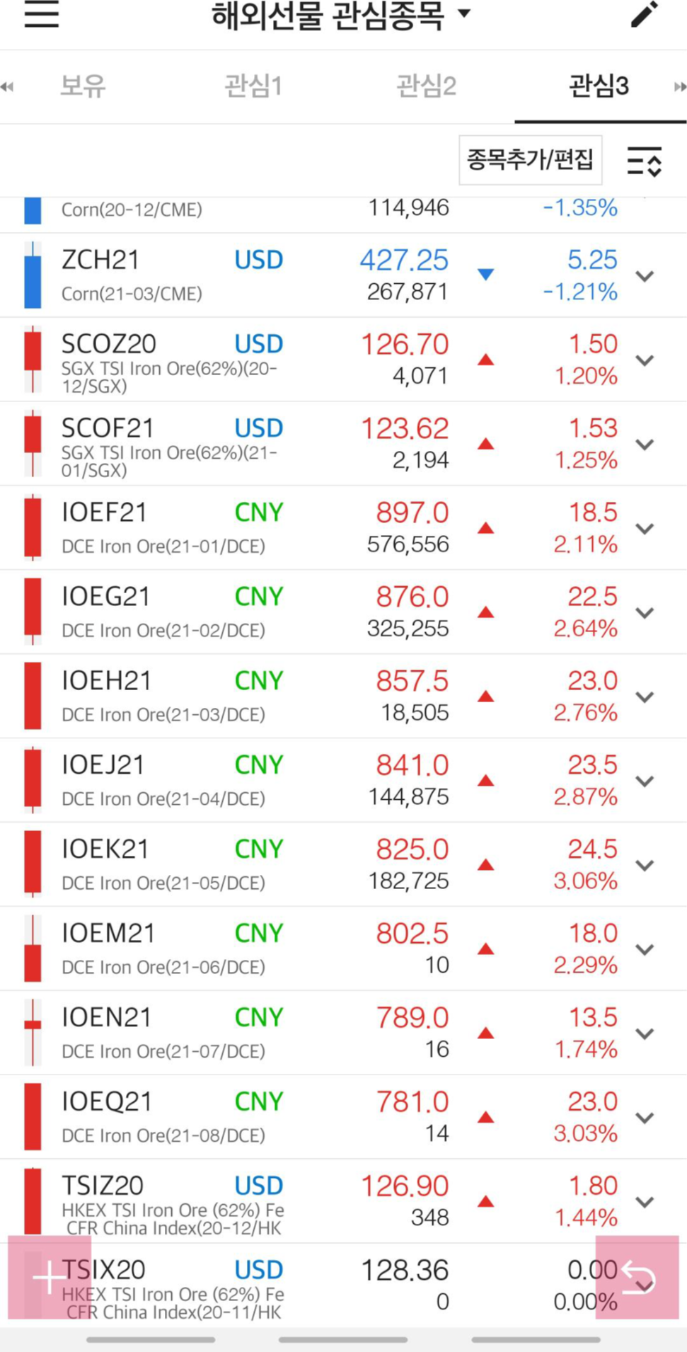 여전히 철광석 매도 포지션 유지 및 추가 ***************