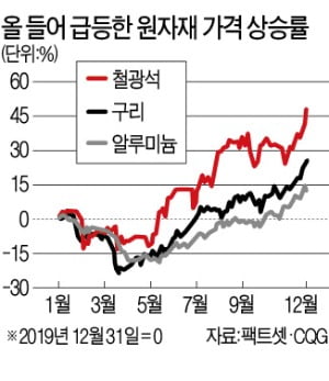 구리 8년만에 최고…철광석 50%, 알루미늄도 40% 뛰어