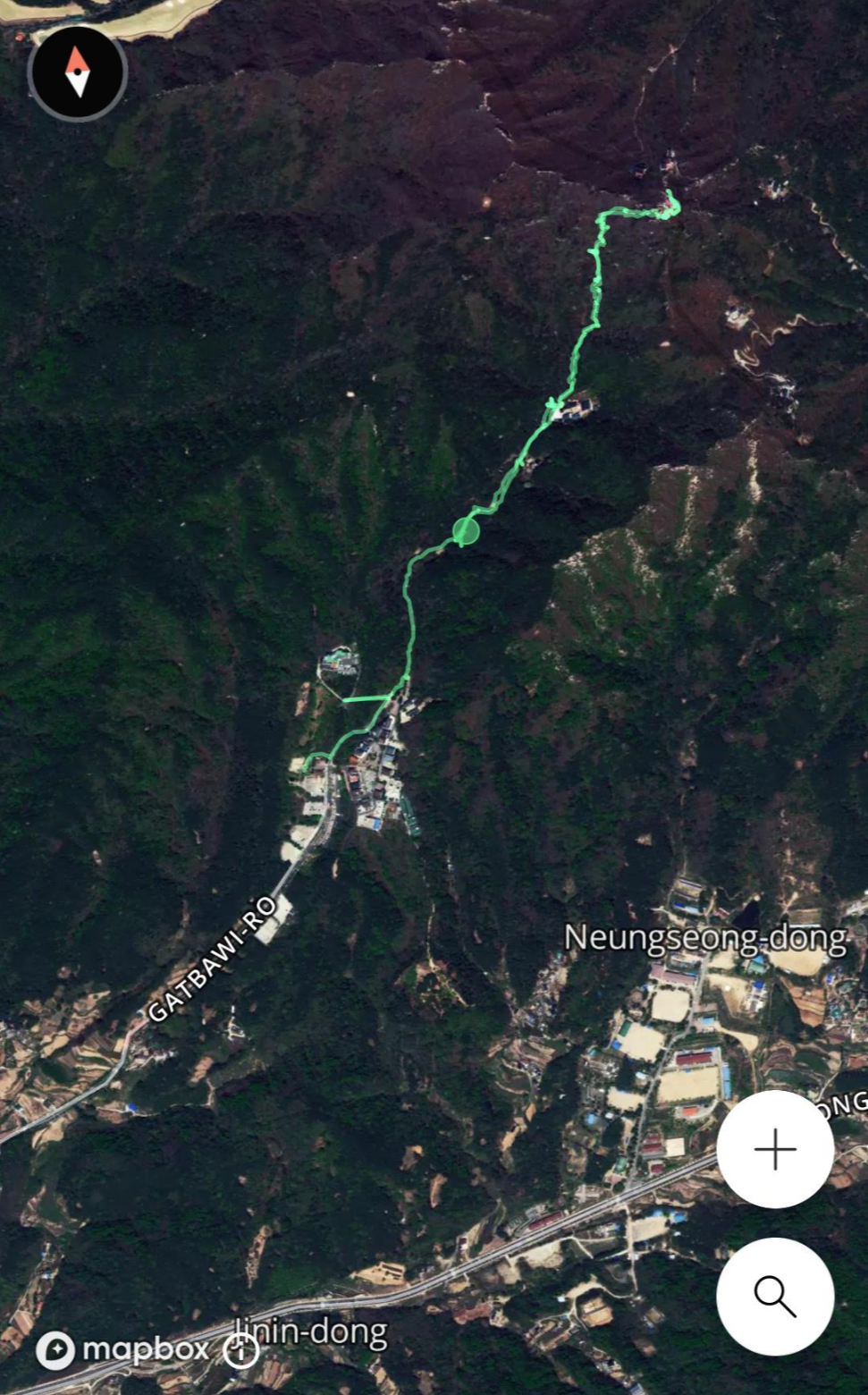 스마트워치의 GPS로 기록된 등산 경로입니다.