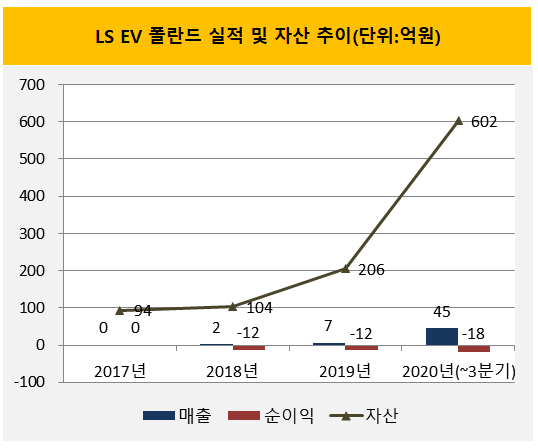 LS전선이 LS EV 폴란드 법인을 설립한 해 지분 100%의 장부가액은 94억원이다. 이는 같은 시점 해당 법인 총자산과 비슷한 금액이다. 기말잔액은 2018년말 79억원, 2019년말 69억원으로 감소했다. 적자가 이어졌기 떄문이다. LS EV 폴란드는 2018년 12억2000만원, 2019년 12억5000만원, 2020년 상반기 17억5000만원의 순손실을 기록했다.