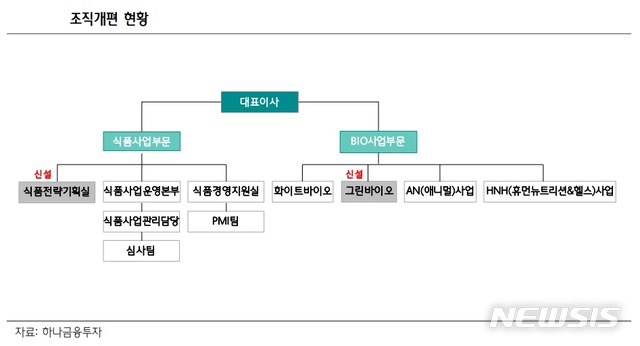 또 조직개편을 통해 성장의 양대축인 식품 및 바이오 부문을 골자로 미래 역량 강화를 위한 사업부를 신설했다. 식품 부문 직속에는 '식품전략기획실'이 만들어졌다.