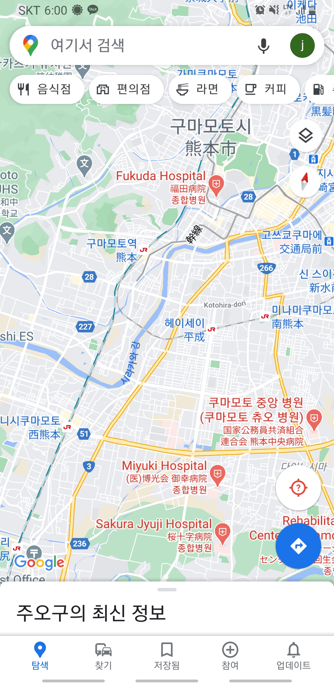 구글지도에서 가까이에 있는 일본에서도 똑같이 활용할 수 있는지 테스트해봤습니다.