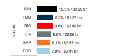 맥쿼리 은행의 애널리스트들은 리서치 노트에서“철광석 가격 상승과 긍정적 인 선행 지표 (예 : 상대적으로 낮은 항구 재고 및 긍정적 인 철강 마진)가 철광석 노출에 대한 우리의 낙관적 입장을 뒷받침합니다.