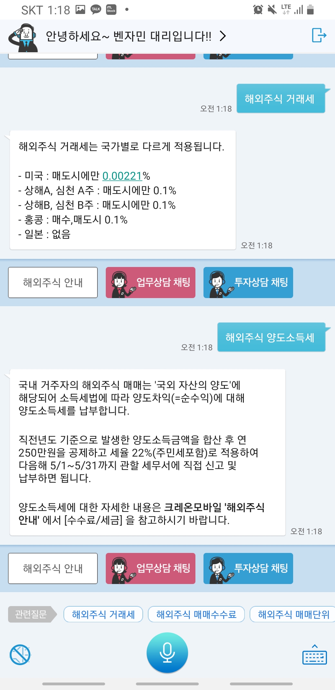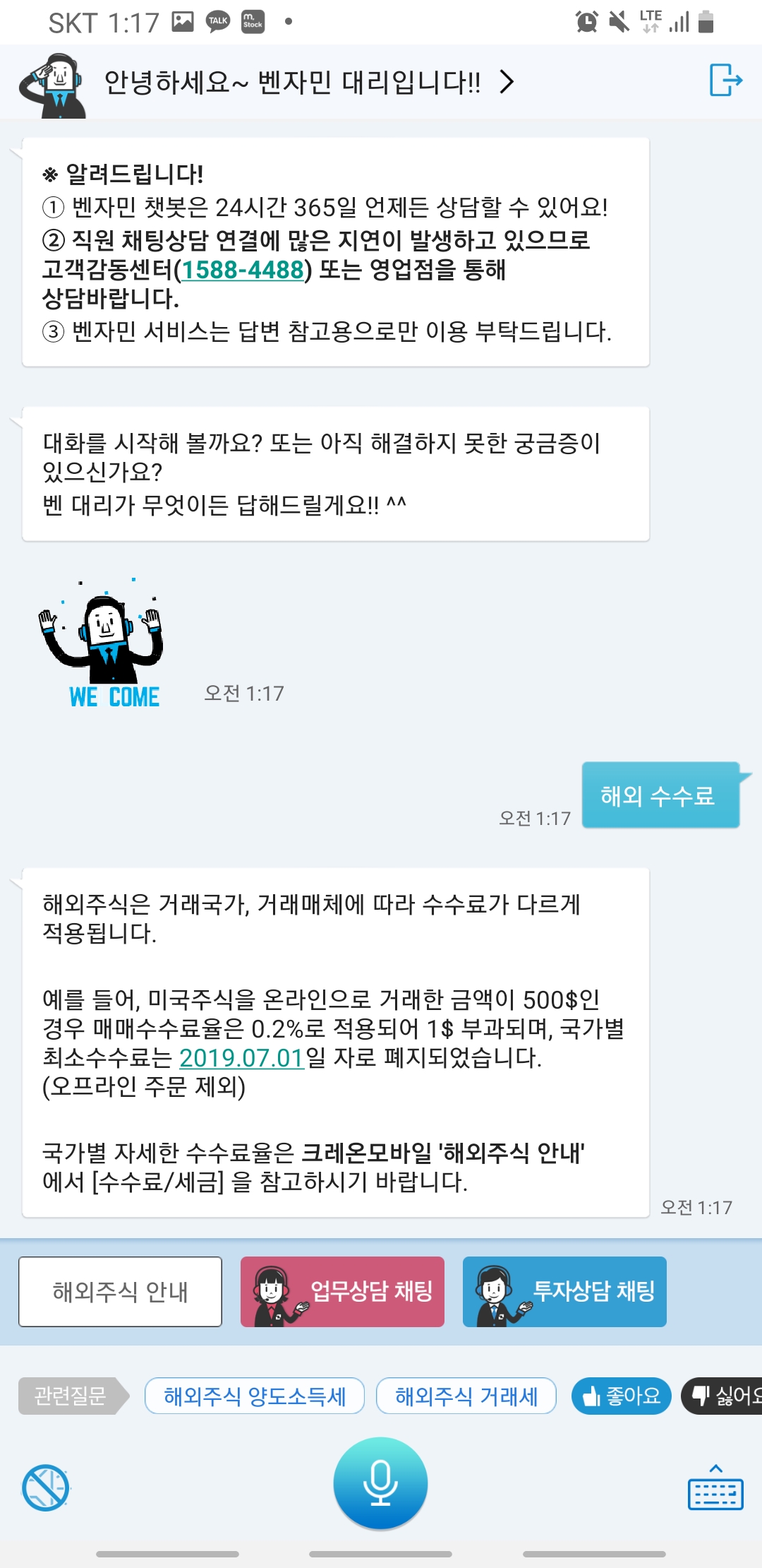 주요 문의 내용은 온라인 거래 매체 사용법, 수수료 등 증권 관련 업무, 해외주식 투자 등이었다.
