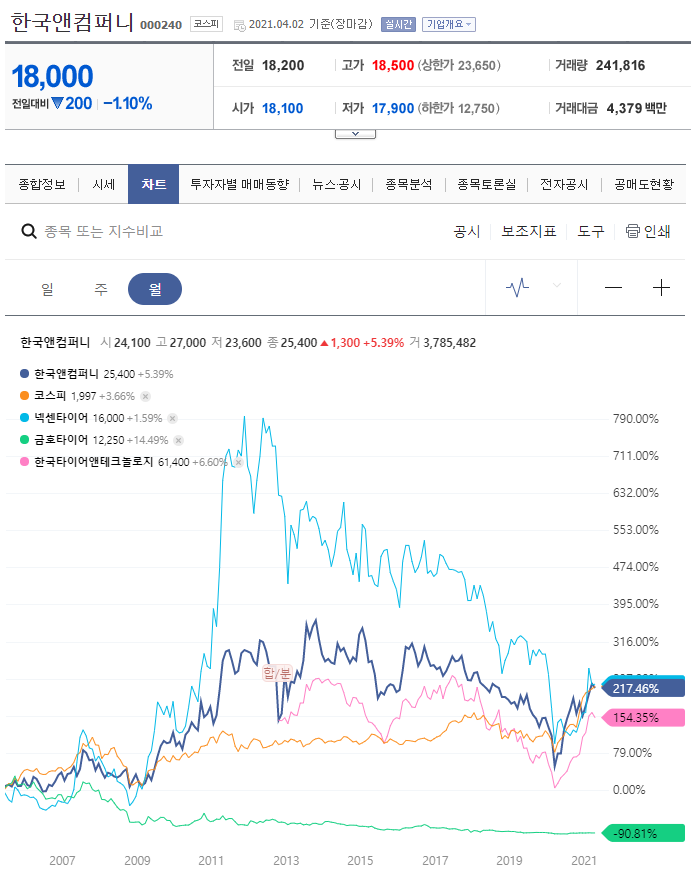 타이어 업계의 가격 경쟁이 치열한데다가 주거래처였던 현대기아차가 고급차종에는 외국산 타이어를 장착하면서 침체를 겪기 시작하고 있는 시점에 매수했습니다.