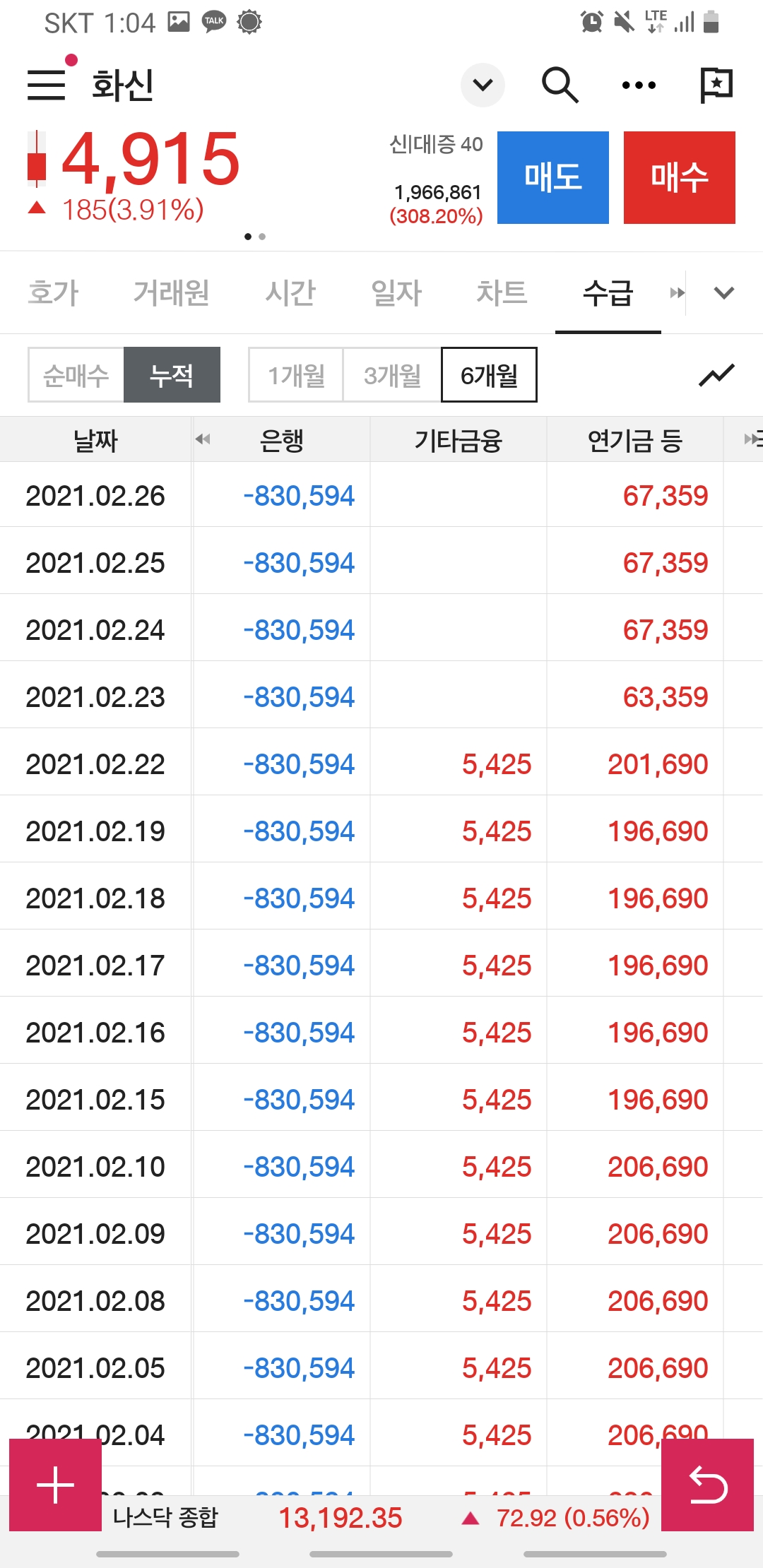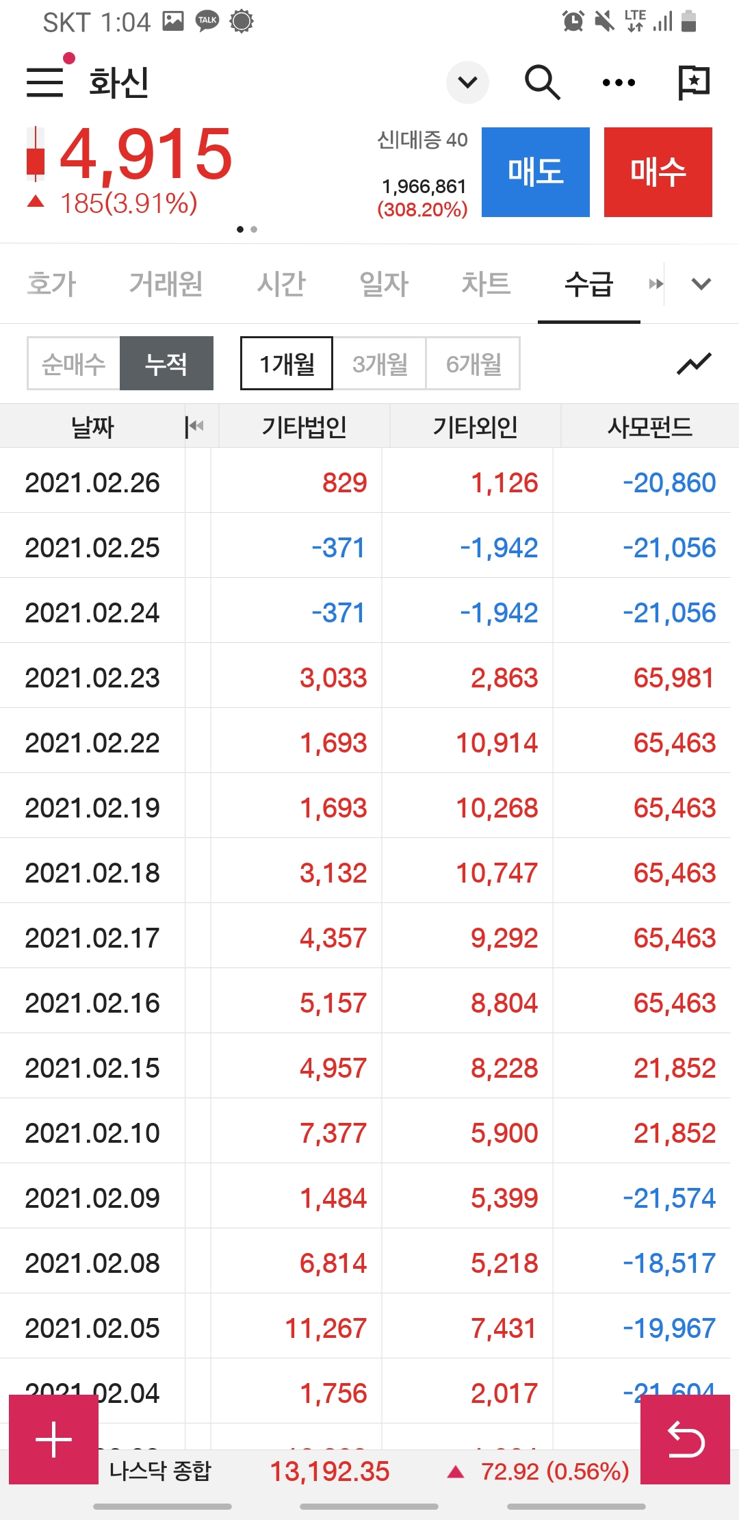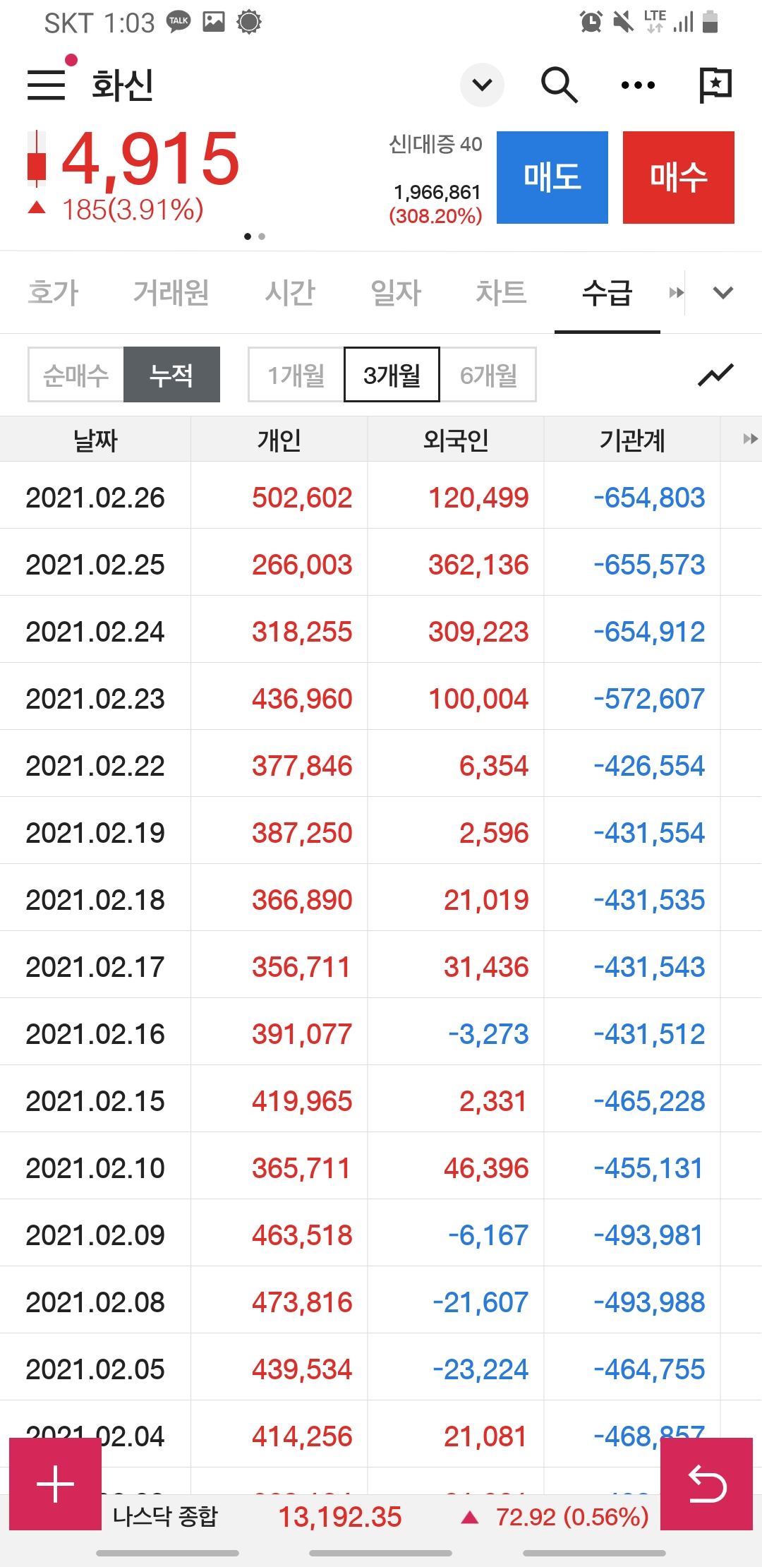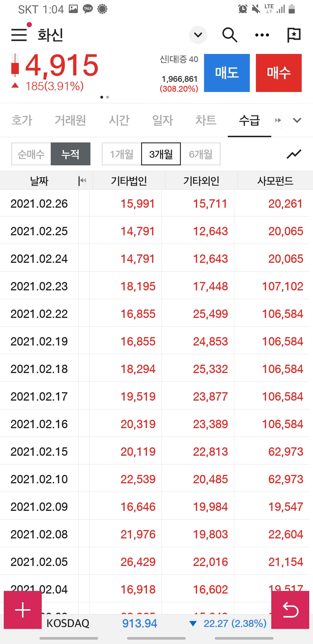 매수 누적 1개월, 3개월, 6개월 전부를 봐도 외국인 기관들의 관심에서 멀어지는 듯합니다.