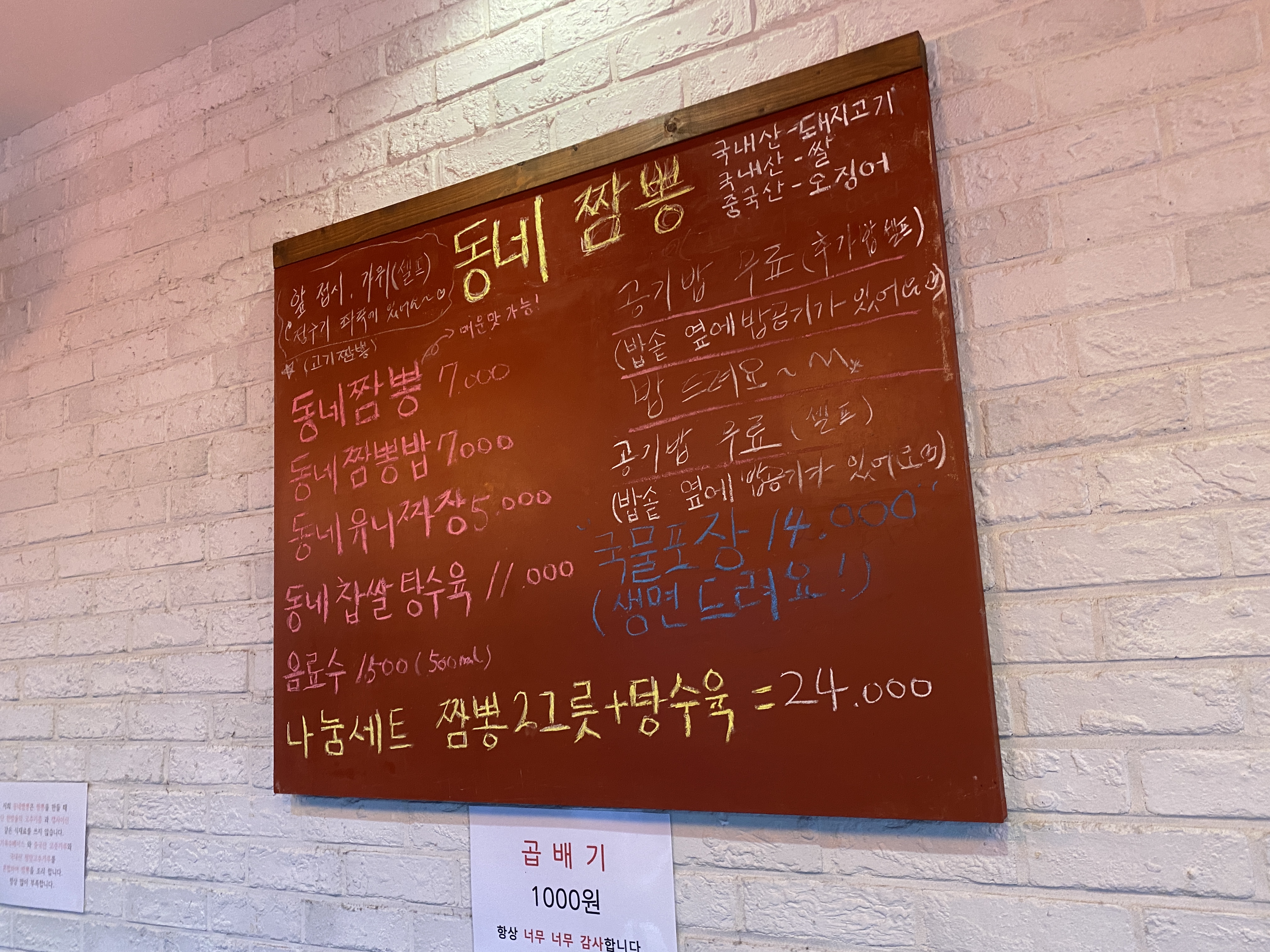 오래 기다린 끝에 테이블에 앉아서 짬뽕을 주문할 수 있었네요.