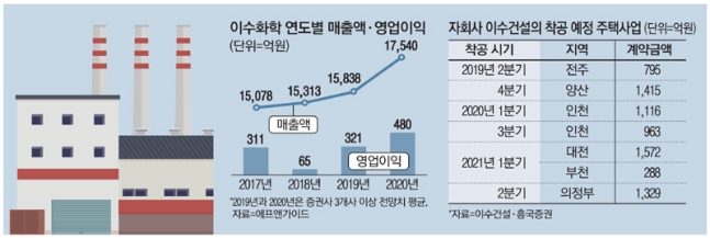 자회사 이수건설의 턴어라운드에 대한 기대감도 커지고 있다. 이수건설은 2016년과 2017년 수주한 주택 부문 사업장이 올해 말과 내년 본격적인 착공에 들어갈 예정이다. 현재 이수건설의 수주잔액은 1조8000억원으로 4~5년 정도의 물량을 확보한 것으로 알려졌다.