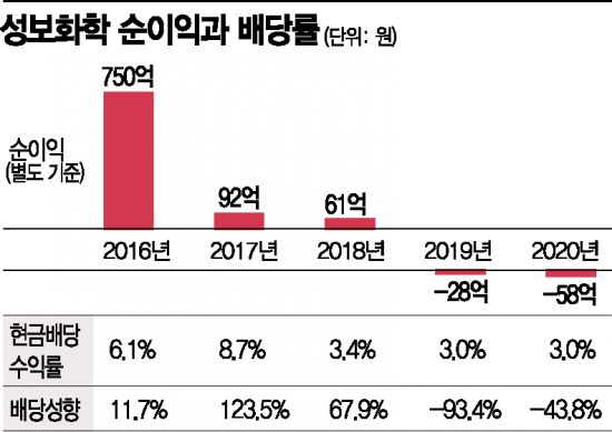 성보화학 관계자는 "성보화학은 지금까지 매년 배당을 해 왔지만 앞으로도 계속 배당을 할지는 결정된 바 없다"고 말했다.