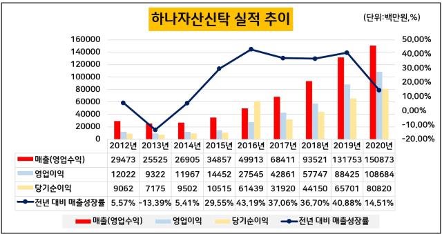 자회사 하나자산신탁의 성장세가 두드러짐.