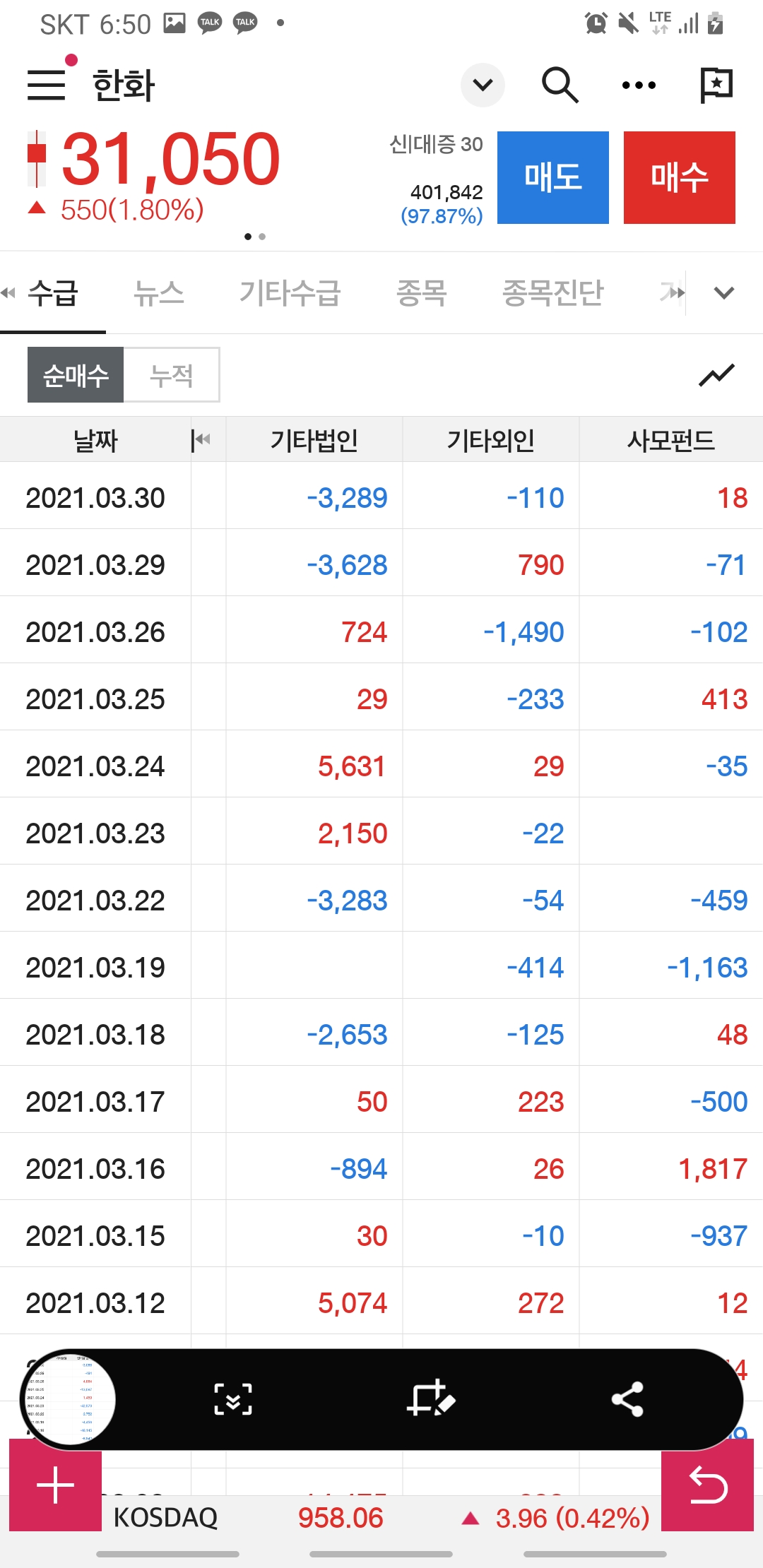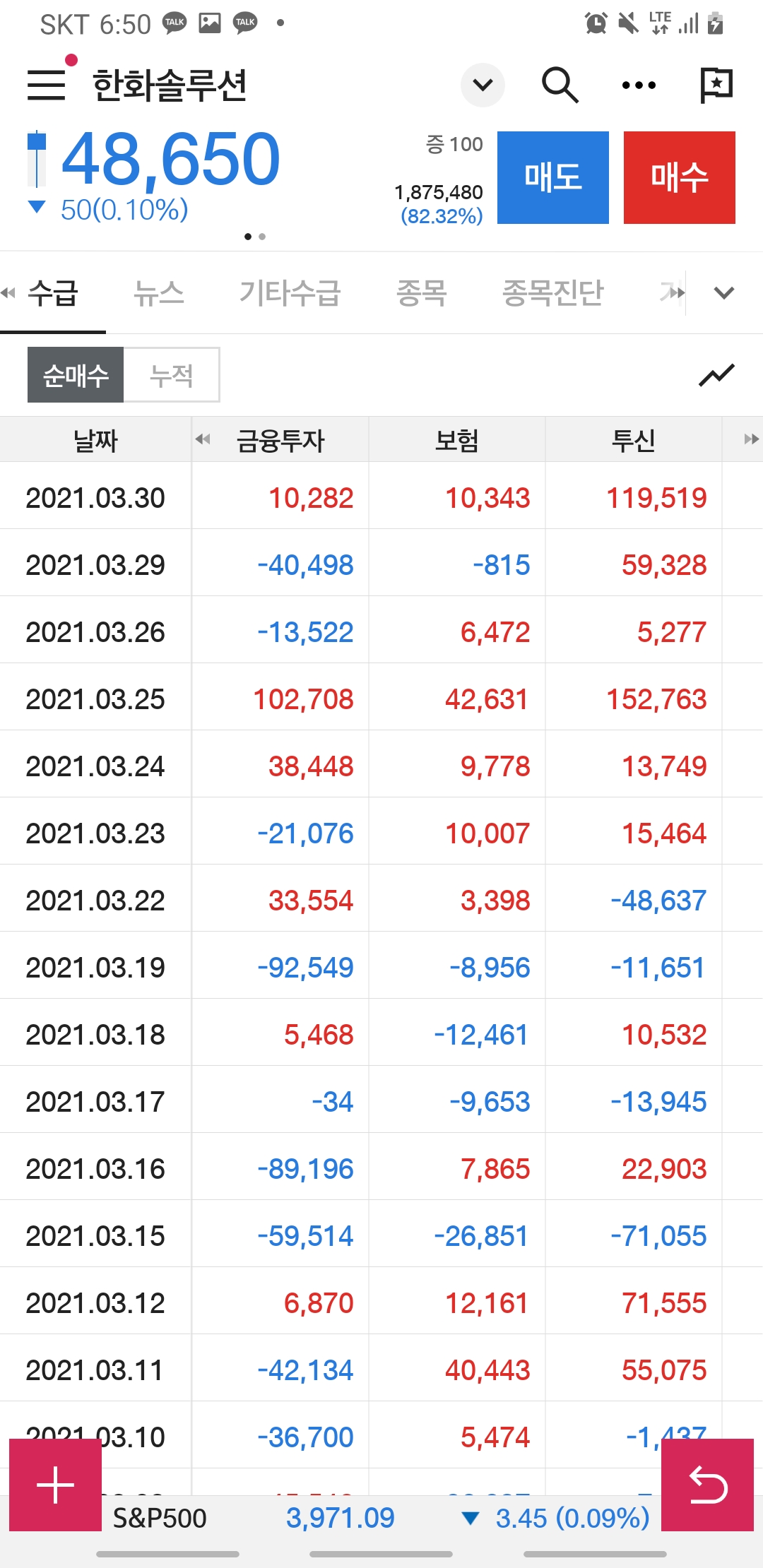아니면 한화와 한화솔루션은 대규모투자단행으로 비용집행에 따른 단기적인 악재로 본걸까요?