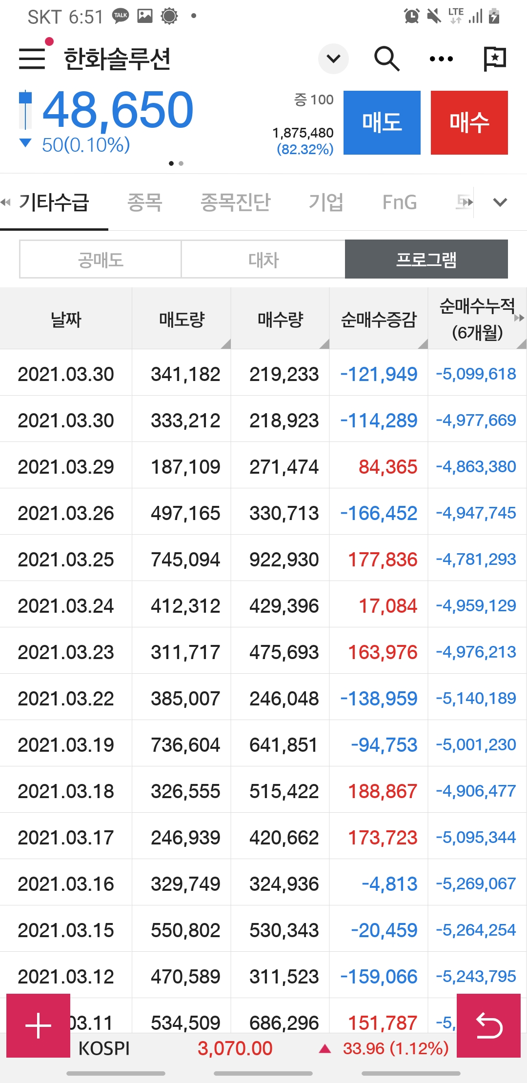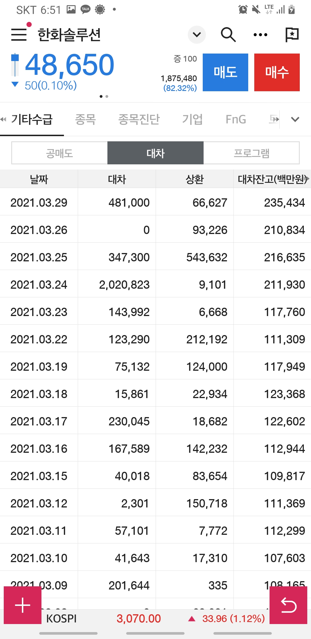 더군다나 한화솔루션은 대차나 프로그램 매도가 그다지 줄어들지 않네요?